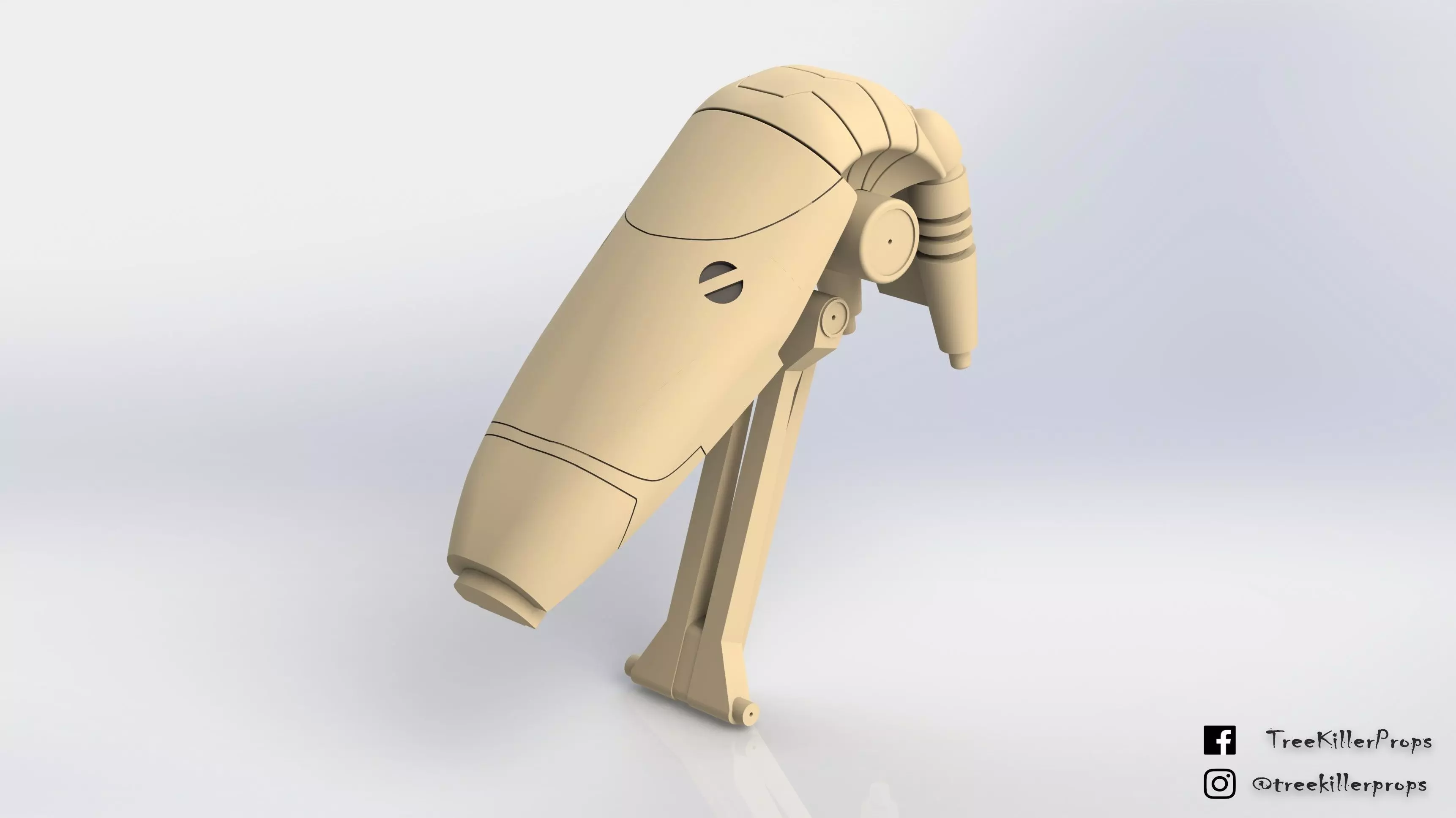 The B1 battle droid was flimsily designed and easy to destroy, and was only truly successful in large numbers. The model was created on my own with SolidWorks 2019. The head has a length of 390mm and was made accurate as possible. The B1 droid is divided in 18 parts: