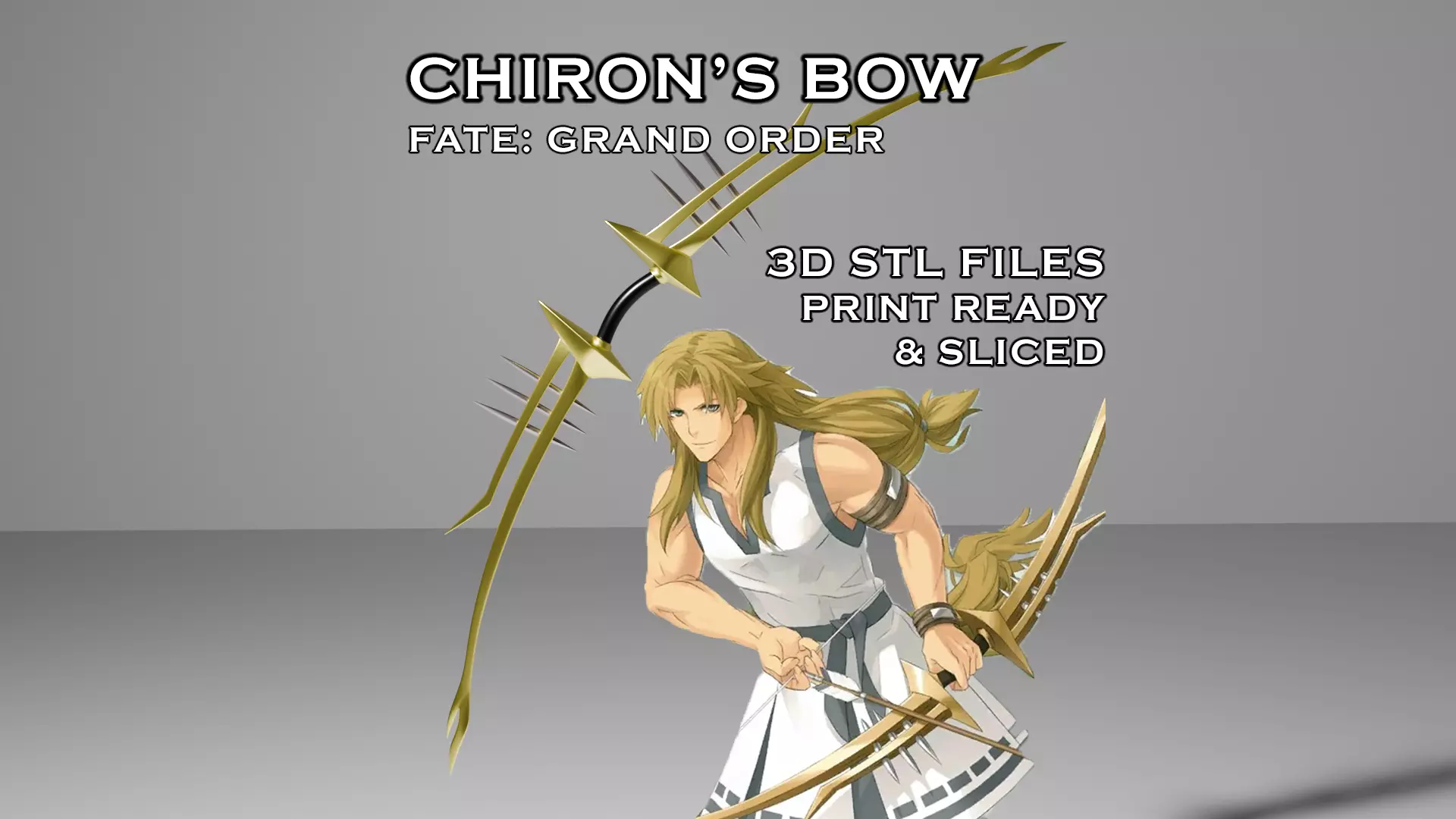 Chiron's Bow from Fate: Grand Order. It is a highly detailed model that is designed for 3D print and easily printable. All details are real reliefs or engraves. Ideal for cosplaying.