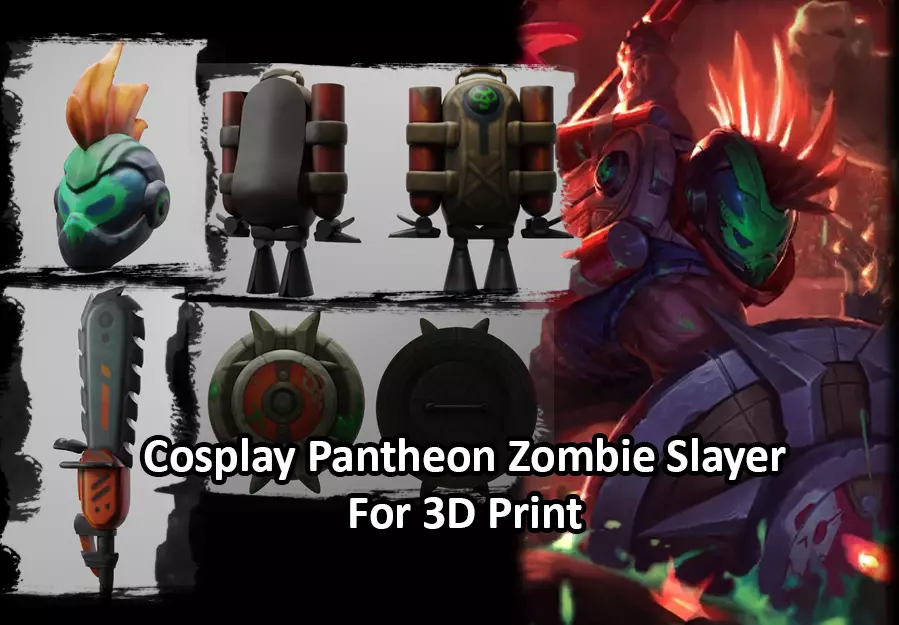 - 3D model of the helmet, spear, shield and jetpack of the Pantheon Zombie Slayer from League Of Legends.