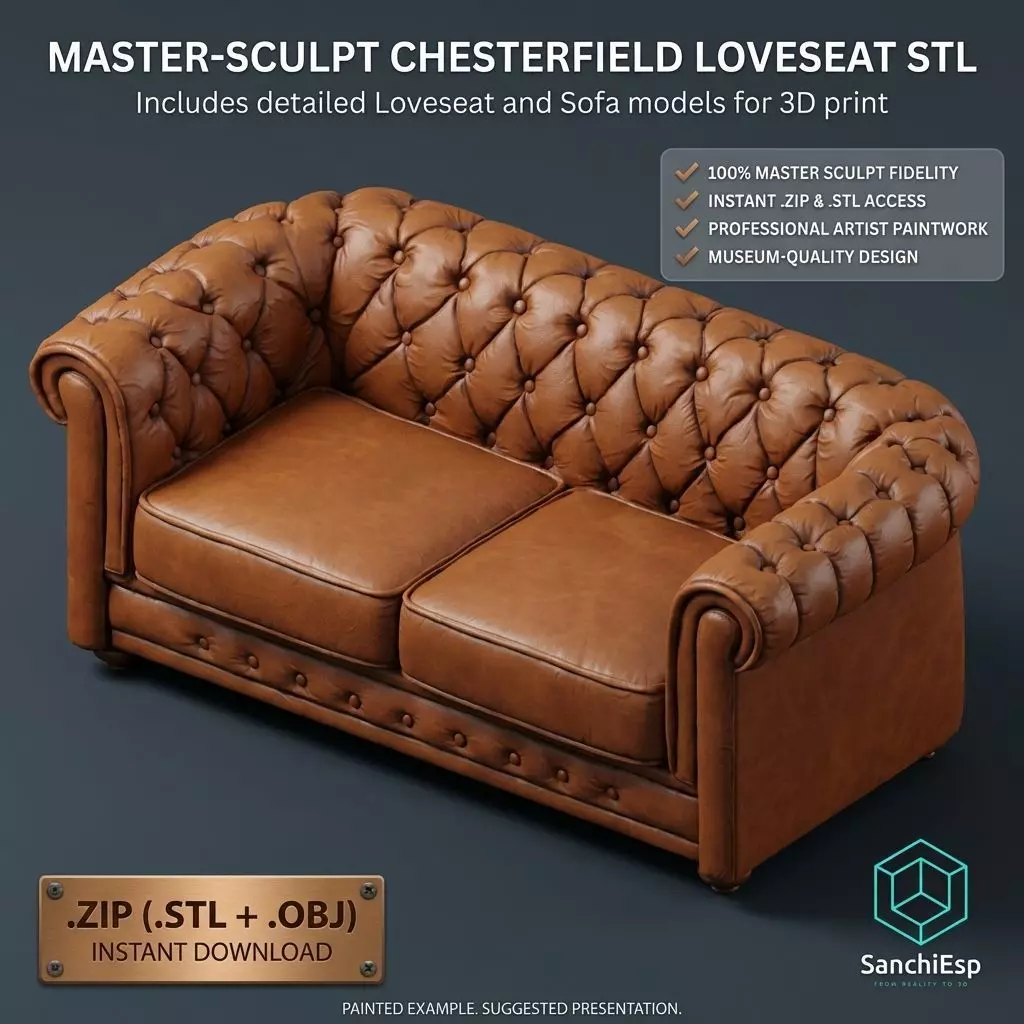A highly detailed 3D printable model of the classic ***Chesterfield* Sofa** (loveseat). This miniature piece captures the iconic button-tufted design and elegant curves, making it perfect for adding a touch of vintage luxury to your miniature scenesor collection.