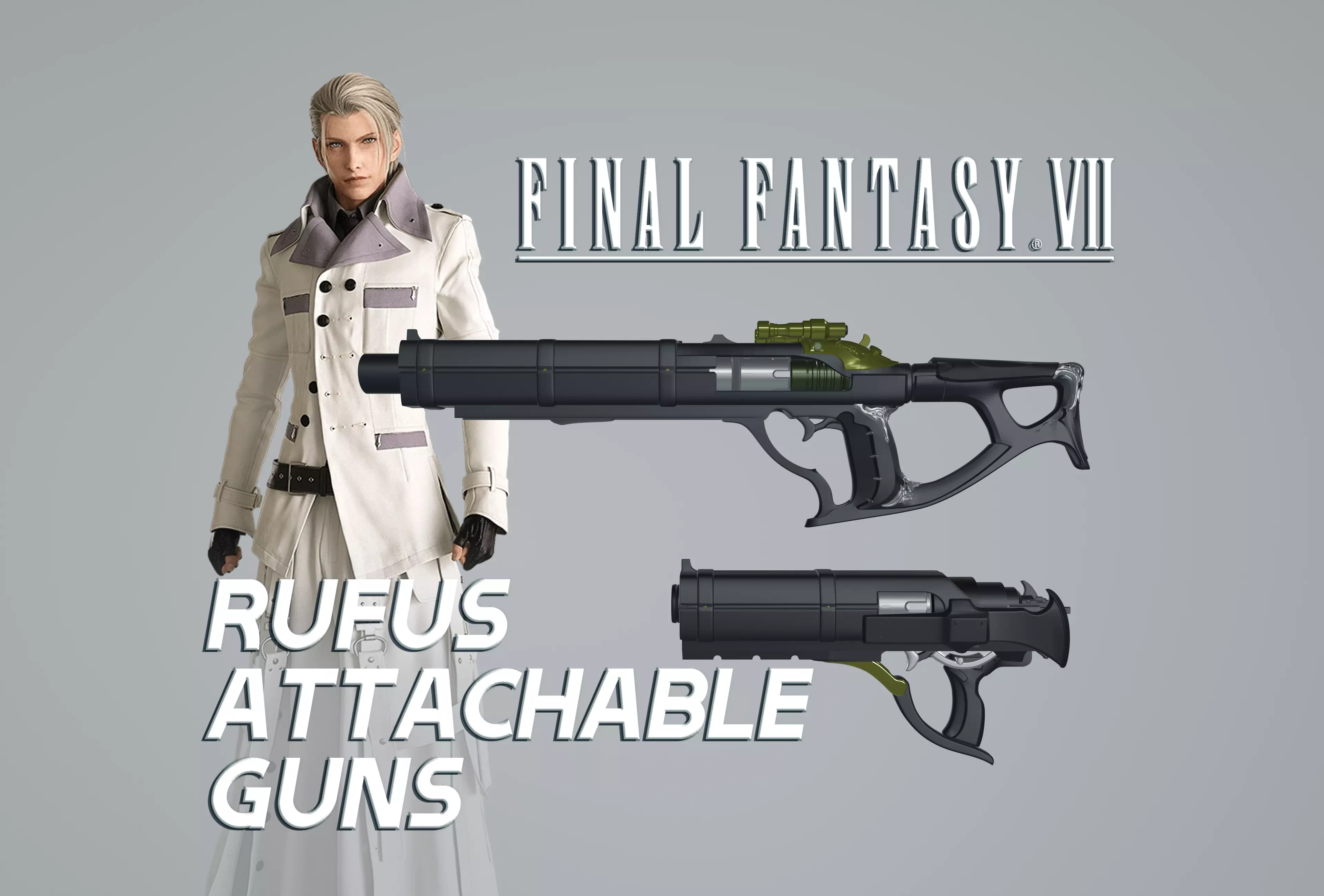 Rufus Shinras guns from Final Fantasy VII now in 3D printable form for display / cosplay / prop etc.!