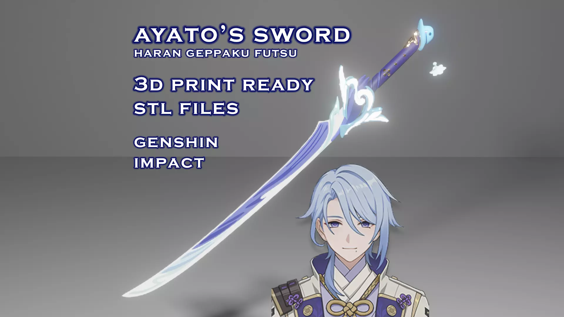 Genshin Impact Kamisato Ayato's identical weapon, Haran Geppaku Futsu. It is a highly detailed model that is designed for 3D print. All details are real reliefs or engraves. Ideal for cosplaying, decorating etc.