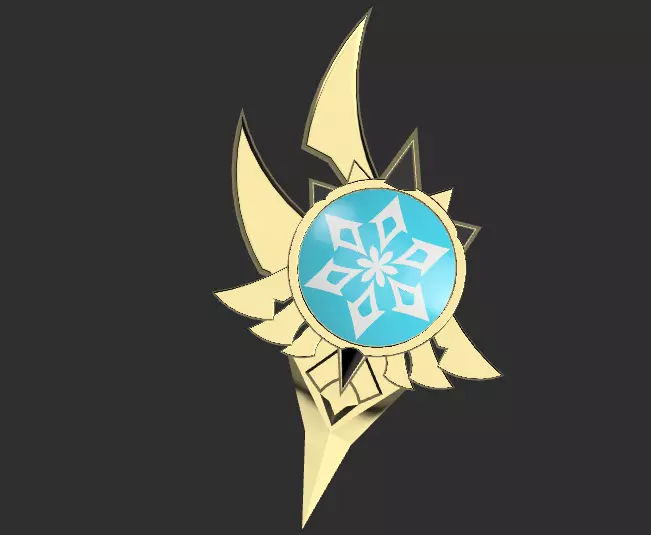 My 3D replica of Eula's cry vision from Genshin Impact. This vision was 3D modeled only in one side, in case you wanna print it in half or for to assemble a two sides version. The central gem is modeled in case you wanna print it with a transparent 3D resin printer or cast it using polyurethane tinted ones.WARNING: the files come with a smooth gem section and one with a 1mm raised Cryo mark; this doesn't include a separate Cryo mark or the raised version of other ones, wich I'll upload them in the future. The files are available in both STL and OBJ formats.