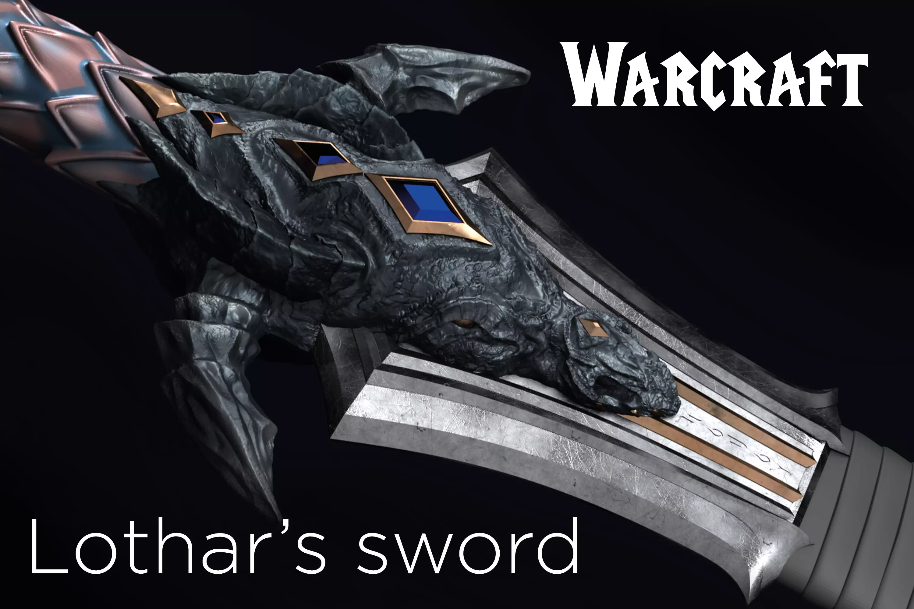 Lothar's sword (Great Royal "blade of stormwind') weapon on warcraft movie for Cosplay or home decorartion.6/22/19 piece (big printer, smap printer and resin printer 120x60c135cm)111cm longHigh poly easy and ready to print.