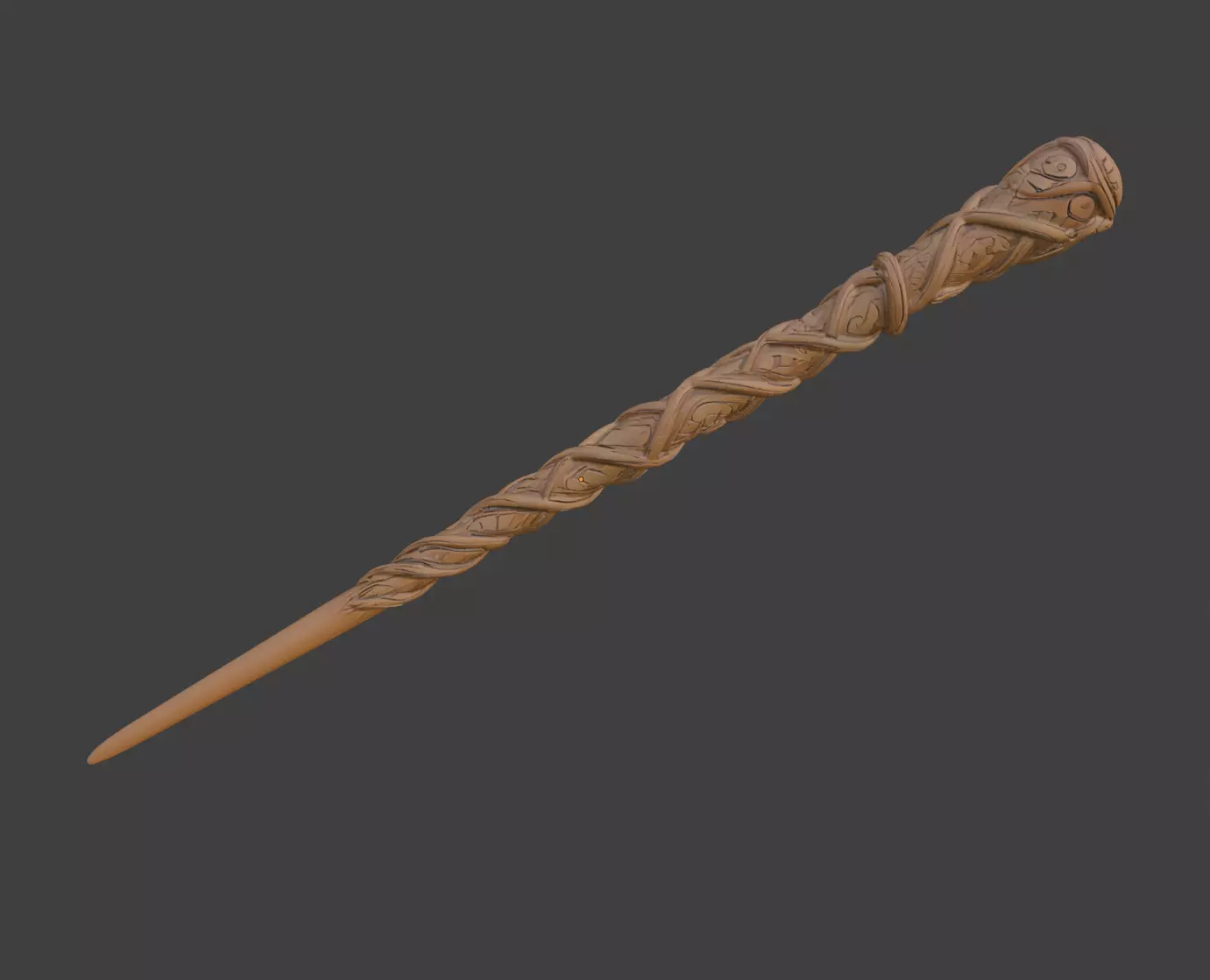 A delicate and elegant wand. Featuring intricate vine and floral motifs wrapping around the length of the wand, this piece is perfect for cosplay, display, or as a gift for wizarding fans.