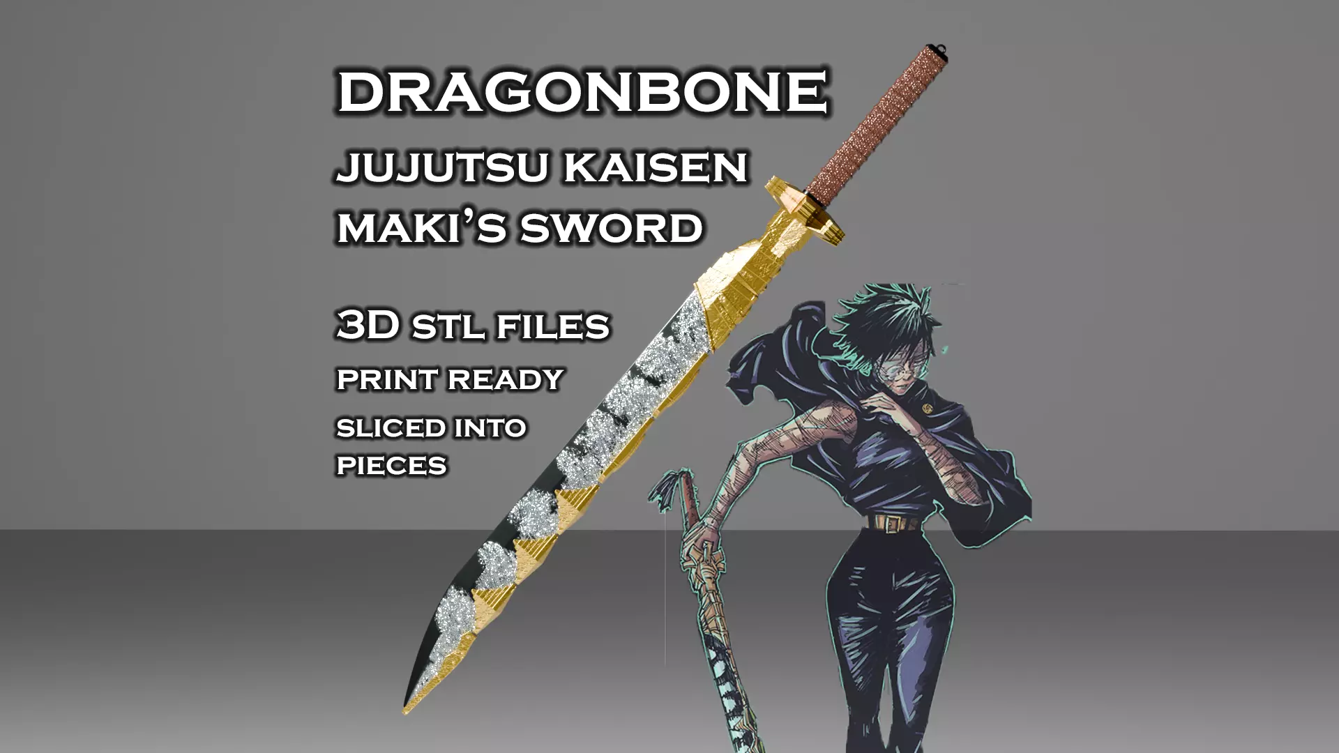 Maki's sword, Dragonbone, From Jujutsu Kaisen It is a highly detailed model that is designed for 3D printing. All details are engraves or reliefs. Perfect for Maki Zenin Cosplay and decorating