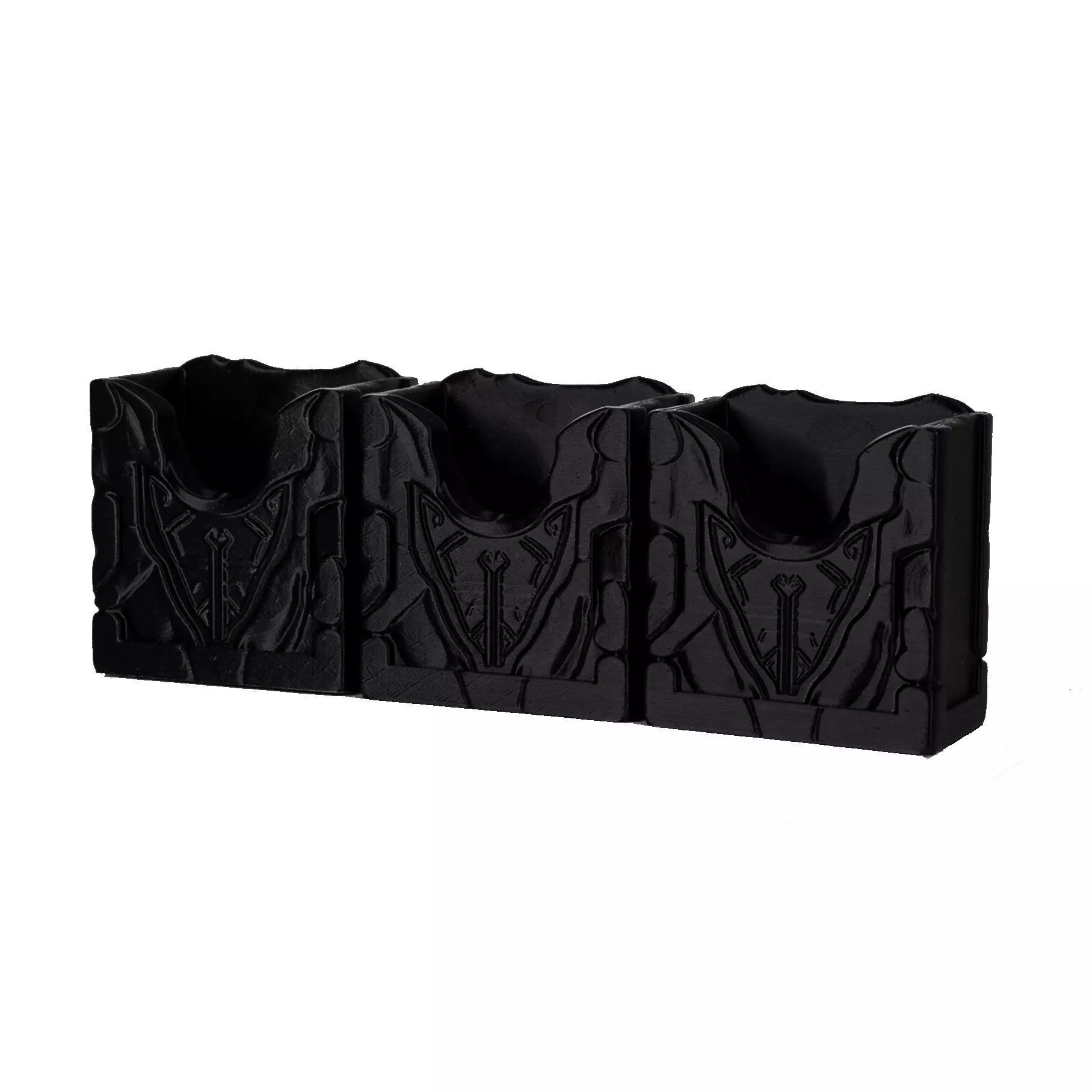 This modular fantasy-style card holder is a functional board game accessory designed to keep multiple decks organized and accessible during gameplay. The model is made up of 3 separate parts that join together, allowing you to assemble a wider card tray depending on your table setup and the number of decks in play.