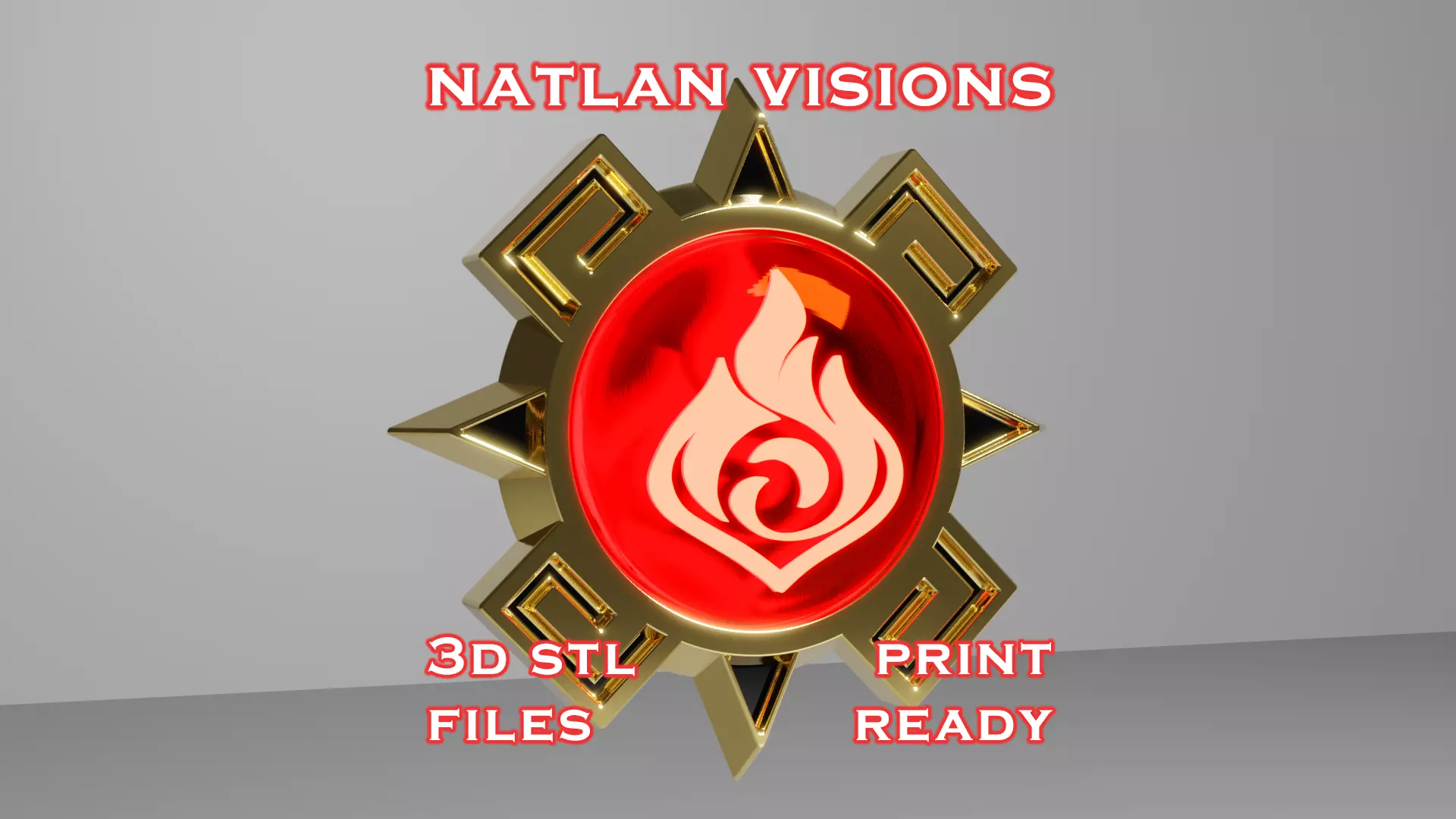 Genshin Impact Natlan vision set. Perfect for Natlan character cosplays like Pyro Archon Murata and other upcoming Natlan Characters It includes;-2 different Natlan Vision Frame: one with flat surface and one with behind rope holes for accesory n cosplaying-7 different element vision stone & 1 masterless vision(no element sign)All details are real reliefs or engraves. Easily Printable. Ideal for cosplaying, decorating etc.