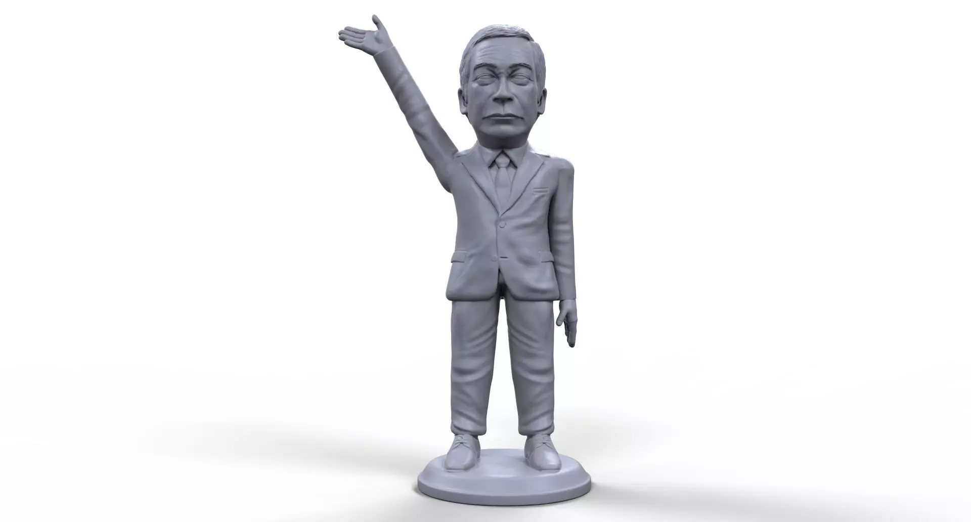 High quality stylized 3D printable sculpture of Nigel Farage. Model is ideal for board games, miniature collections and similar. I digitaly sculpted him in unique artistic style. His proportions are not realistic.