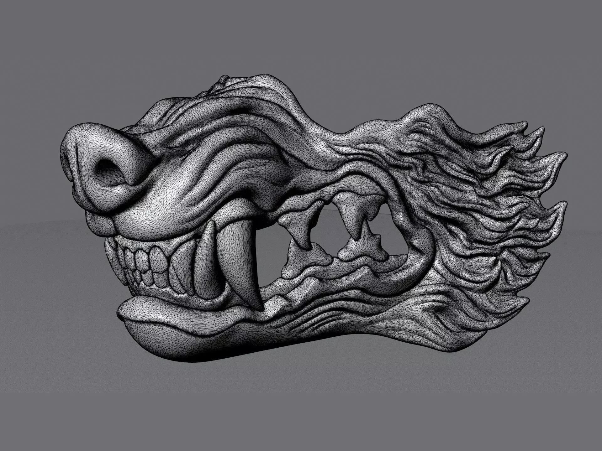 A low-poly model of face wolf mask with fur and teeth. Adaptive textures has been used and added in .png format. 3D printable. Has holes to fixate on a face with rubbers. File for print it personally on a 3d printer. Scale is real made for an adult face, so you can print as need. It is not forbidden to resale the printed mask if you want.