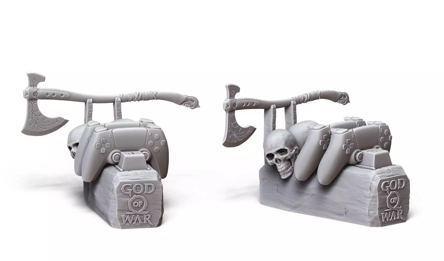 Bring the power of the Norse realms to your gaming setup with this God of War–inspired charging station stand! Designed with a mighty battle axe and two skulls, this stand transforms your regular PS5 controller charger into an epic display piece.