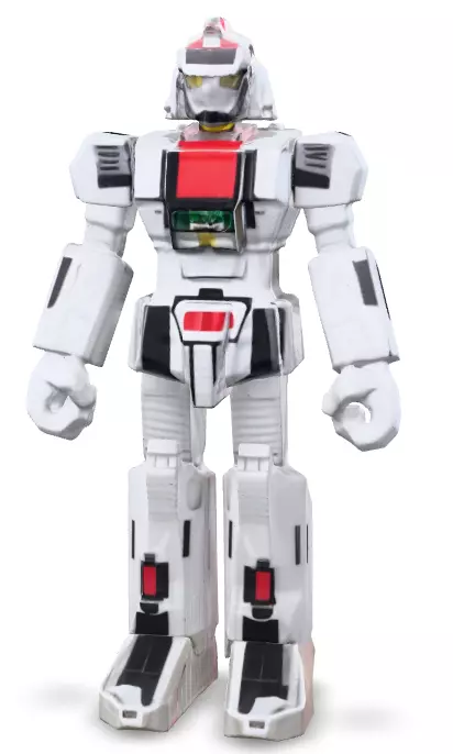 This concept features a retro-style mecha robot inspired by classic 80s sci-fi aesthetics. The design showcases a blocky, angular silhouette with large mechanical limbs, reinforced armor plates, and a distinctive square chest panel that gives the robot a vintage, heroic presence. The color scheme emphasizes white and gray tones with striking red and green accents, enhancing its nostalgic look.Perfect for creators designing stylized mechs, game assets, animation characters, or collectible robot figures, this model brings an old-school mechanical charm blended with clean, readable shapes ideal for 3D modeling and rigging.