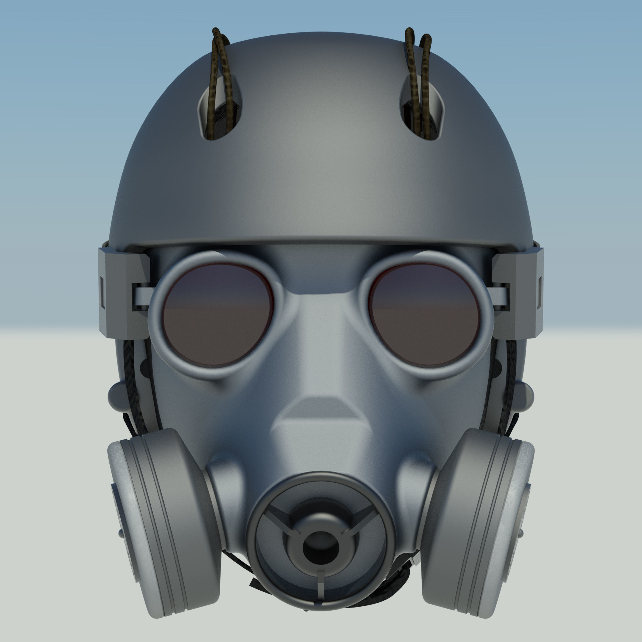Exoskeleton have come with specially made tactical helmets with integrated gas masks. The images show an example of a belt-suspension system and accessories (marked with red) that are not included in the model.