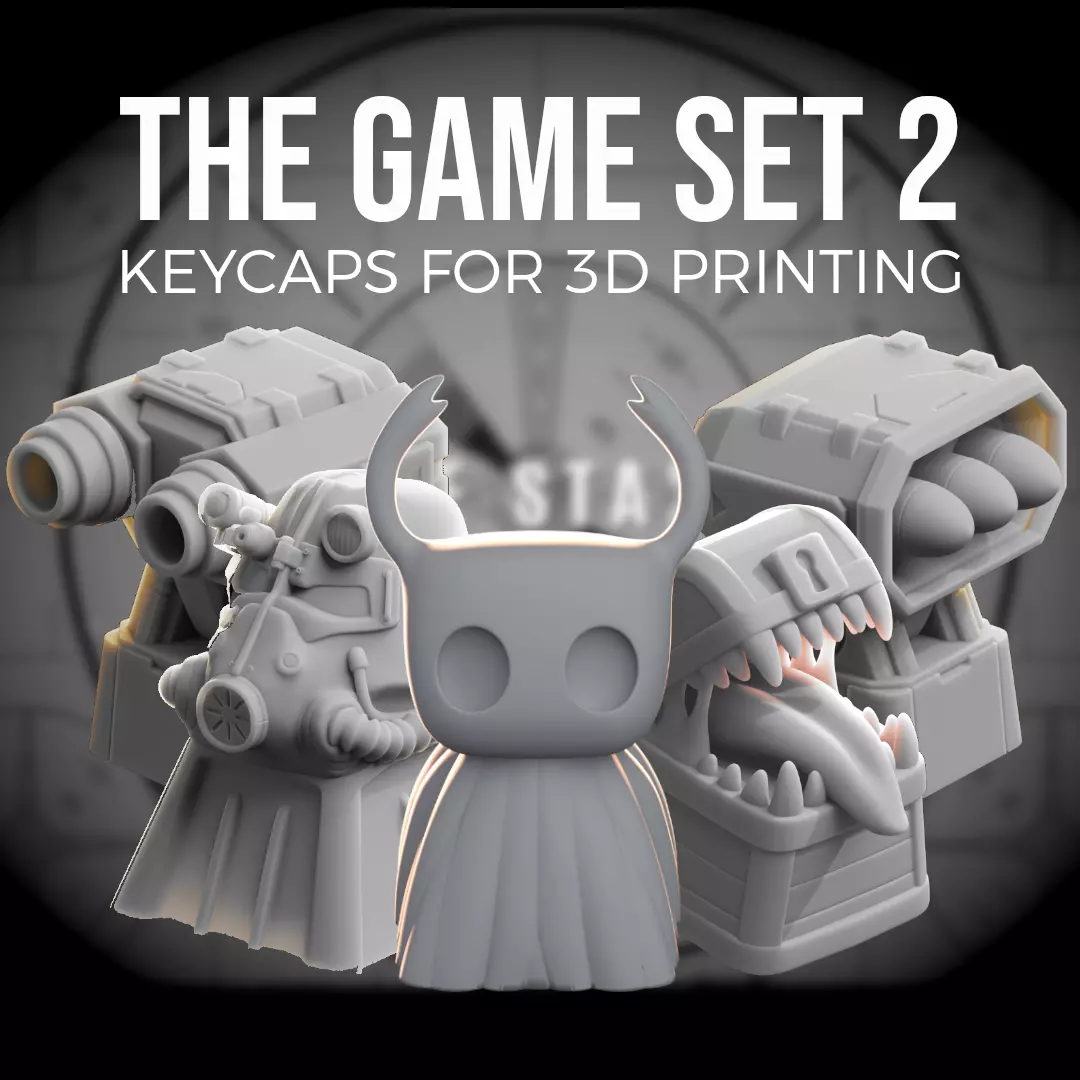 This set includes:EMP Rocket – Inspired by sci-fi technology, perfect for fans of digital chaos. Nuclear Cannon – A powerful and explosive design for gamers who love strategic destruction. Mimic Chest – Be careful, what looks like treasure might bite! T-45 Power Armor (Fallout 4) – Nuclear protection for your keyboard, pure post-apocalyptic style! Hollow Knight – Elegant, mysterious, and full of indie game charm.