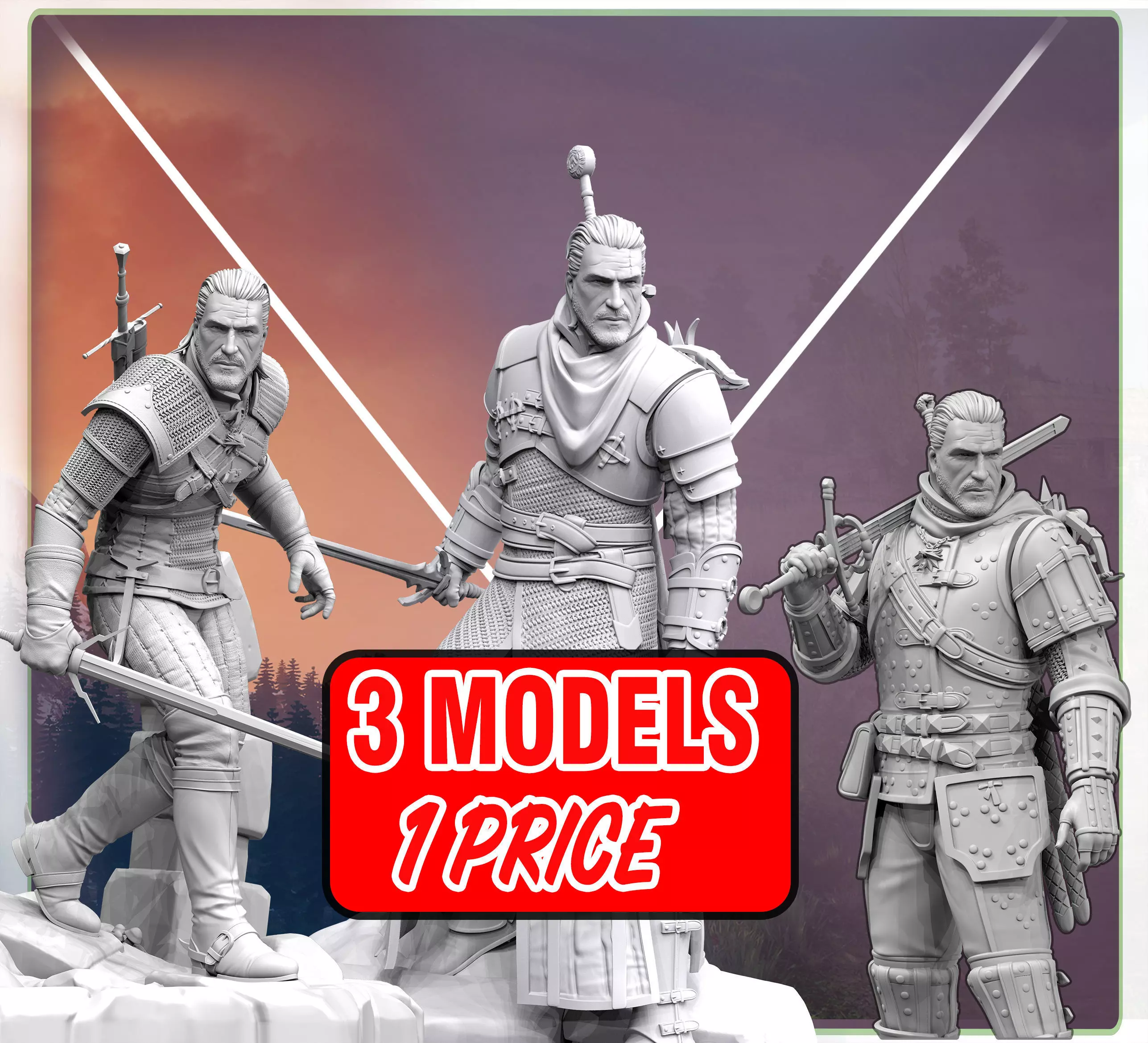 Witcher in the form of figurines for 3D printing Parts separated by a hollow statuette for convenience of printing.