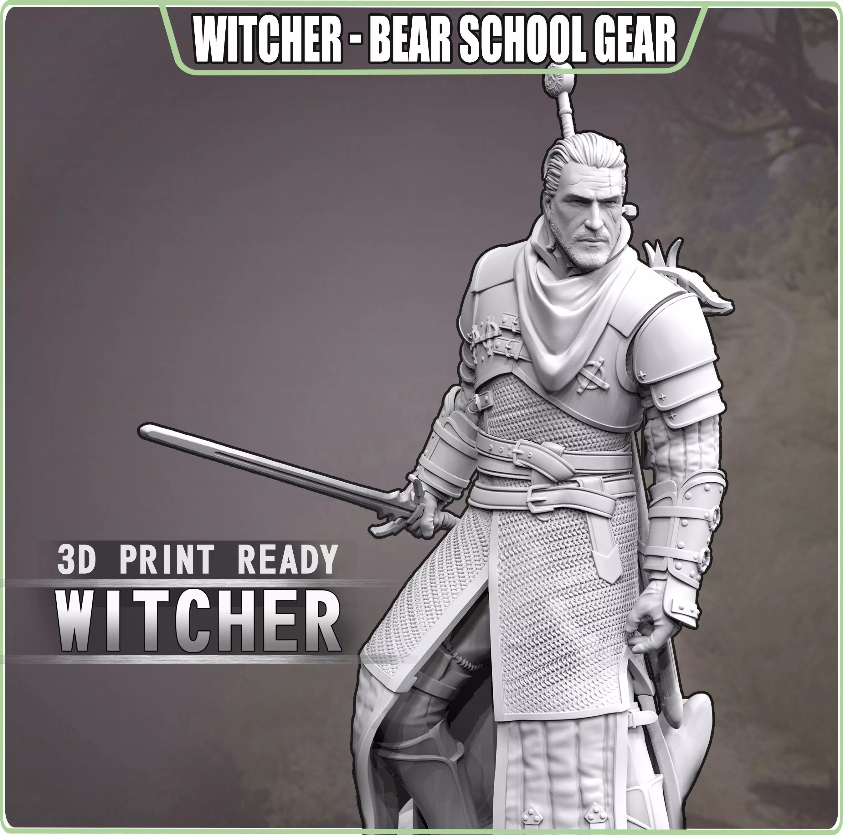 Witcher in the form of figurines for 3D printing Parts separated by a hollow statuette for convenience of printing.