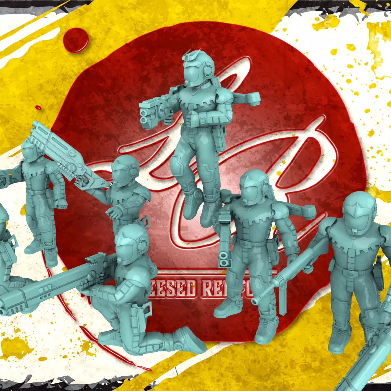 This pack comes with over 50 parts to make any number of infantry proxies for your favorite table top games. The set comes with 3 different head options, several different styles of guns, torso with back pack and without and an addon flight pack. If your Sept need some human Auxilia, this is the kit for you.