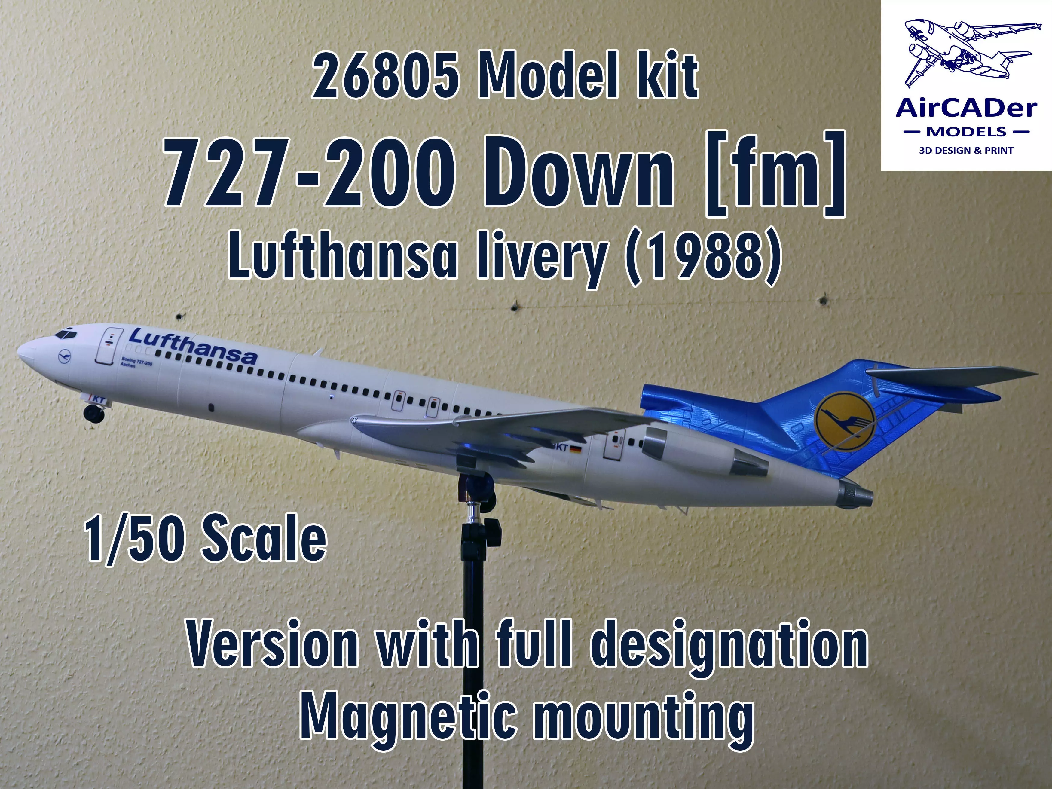 The highly detailed 3D printable model of 727-200 with the designation of doors, windows, air intakes, high-lift devices. Antennas and flap track fairings are made in separate parts. The model requires gluing. 3D Printing Guidelines and Assembly Instructions are included.
