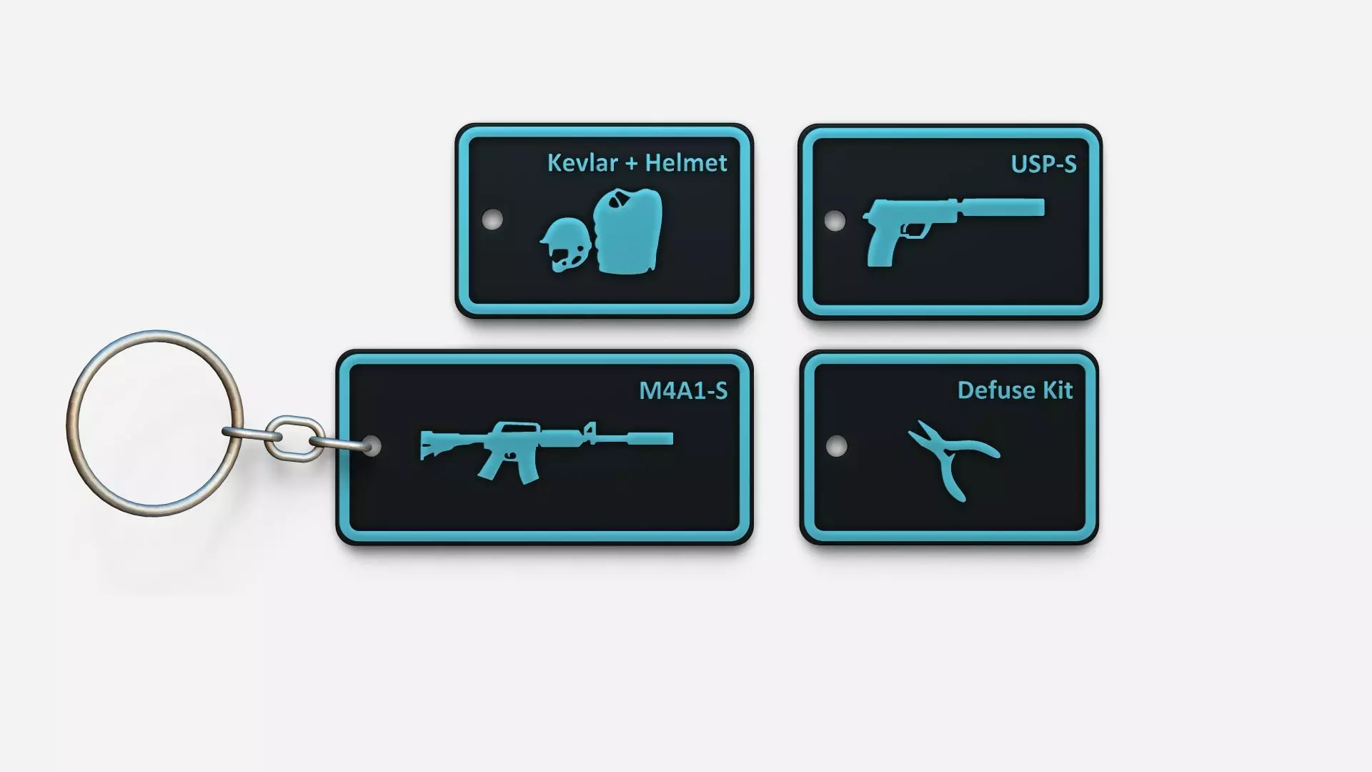 - M4A1-S + USP + Defuse + Kevlar+HelmetNo support neededEasy to print coloredOn my profile there are links for all CS2 weapons, to use as keychain or as a customizable wall panel