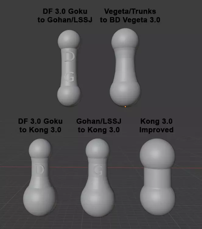 **DF 3.0 Goku to Kong 3.0 Peg: **Allows you to use the Demoniacal Fit Martialist Forever Goku head with the Kong Studio/Beast Deities 3.0 bodies. It also works with the older Kong SSJ4 figures and their SSJ5 figures. This neck peg is reversible so you can use the Kong 3.0 heads with the DF 3.0 Goku Body.