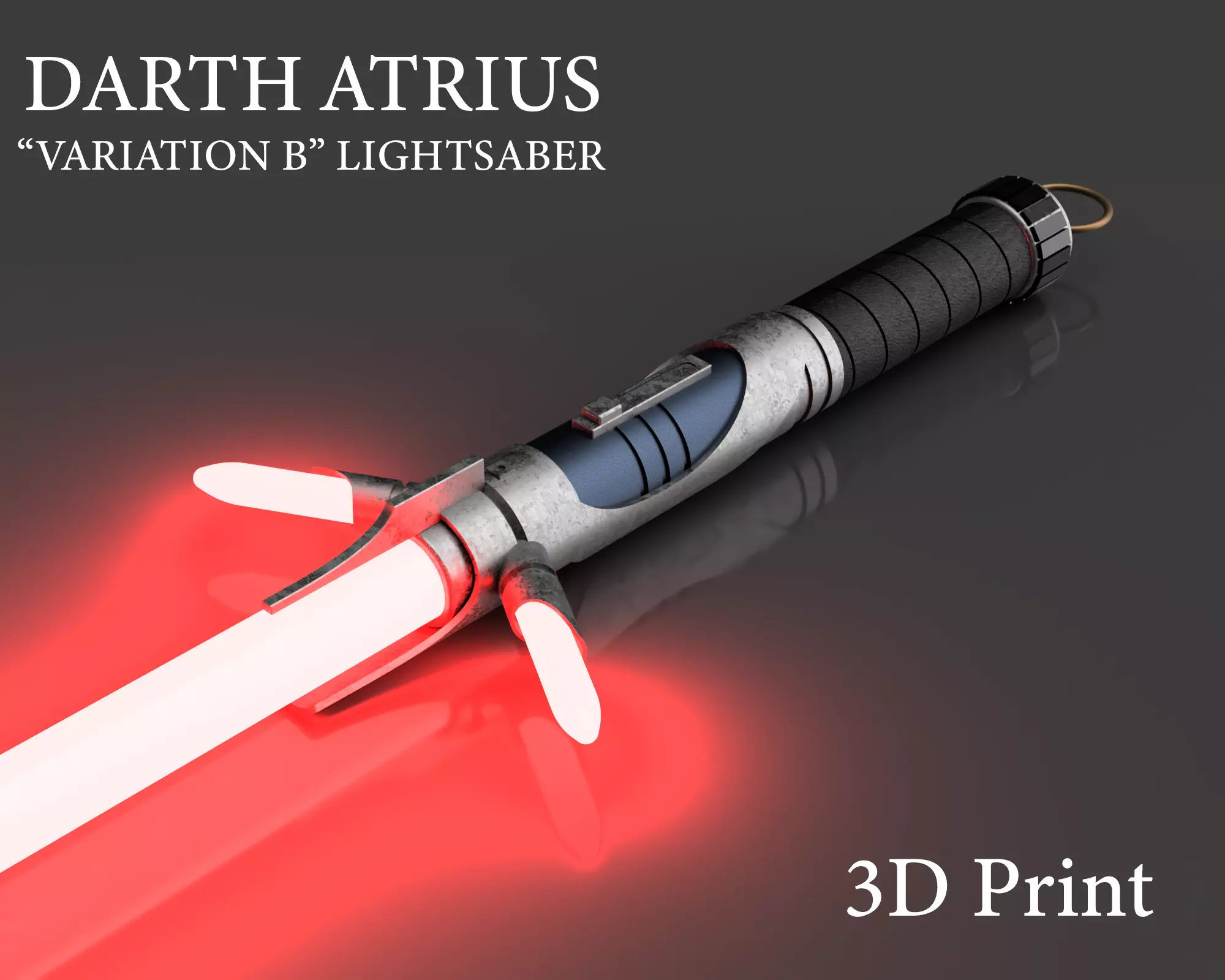The Darth Atrius lightsabers appears in Star Wars comics. This is variation B. This is my take on the hilt, made printable and customizable with my Lightsaber Assembly kit.