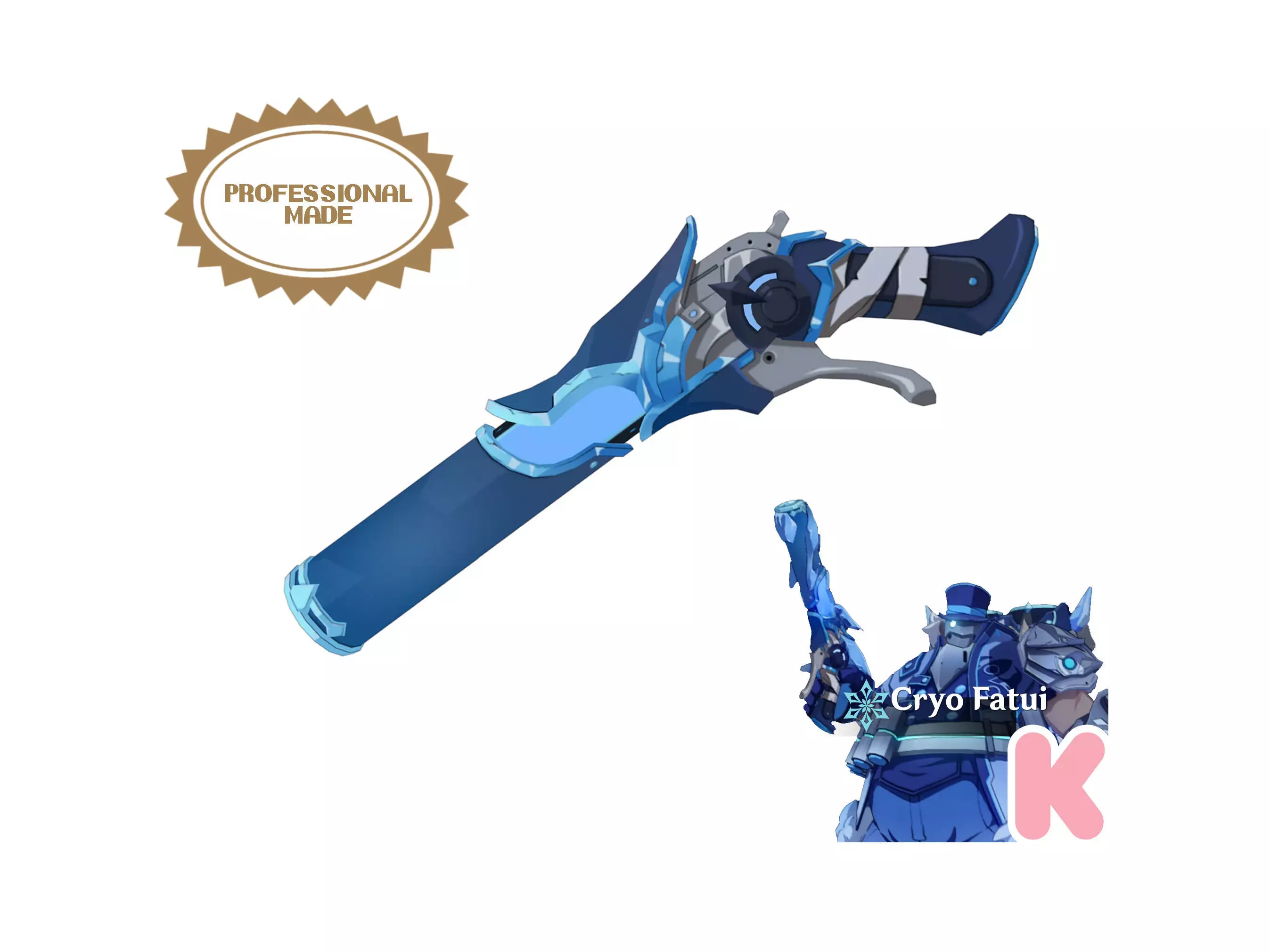 This is an Exact Replica for the Fatui Skirmisher Cryogunner Legionnaire Gun from the video game Genshin Impact. Professionally designed for high accuracy cosplaying and easy 3D Printing. Perfect for your Fatui Cosplay.