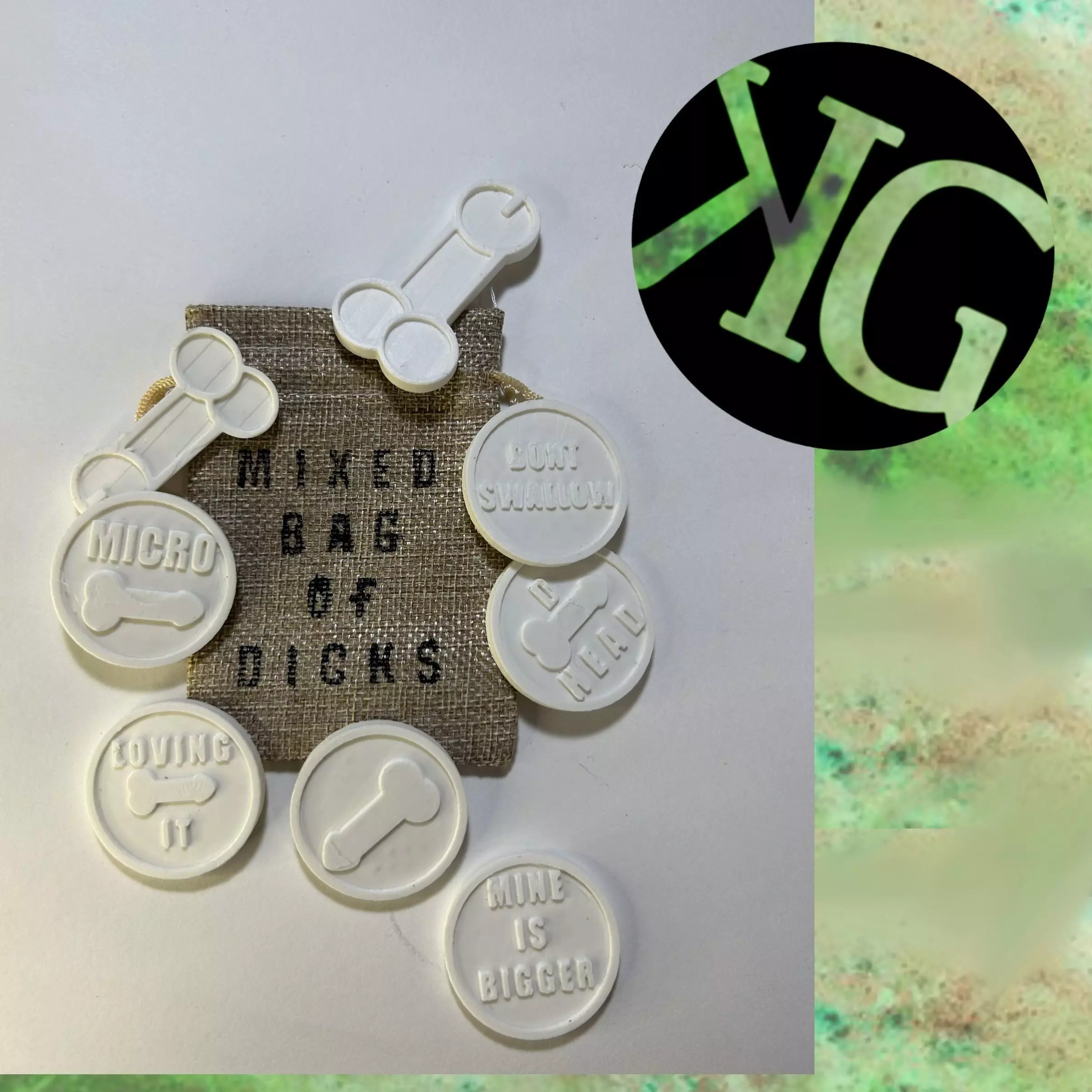 Do you know that saying, Choke on a bag of dicks. We now present you the Mixed bag of Dicks, the gift that keeps on giving. Well now you can print your own, Mixed bag of Dicks". Great for parties, giving to friends and family, or someone you don't care for. This assortment Dick Coins are always great for a laugh!
