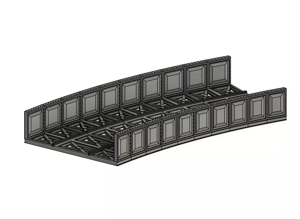 I have also done a 3rd radius (505mm) and 4th Radius (572mm)versions. I will also look at adding some pillar supports for those who may need them.https://www.cgtrader.com/3d-print-models/games-toys/other/model-railway-3rd-radius-curved-bridge-deckhttps://www.cgtrader.com/3d-print-models/games-toys/other/model-railway-4th-radius-curved-bridge-deck