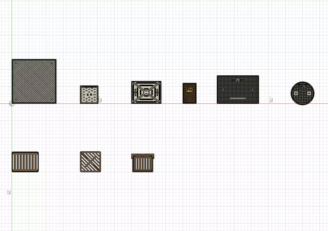 These designs are a collection of designs seen at stations and around where I work. The designs are a collection of manhole and drain covers and vary in sizes, please see photos for more detail.These designs are quite small and only suited for resin printing, some of the detail is really small so a good quality resin printer is ideally needed (14K standard or above to get best quality prints). The detail is in the design even if not fully seen when printed, good eyesight will see it.There are 9 different designs in this collection: 3 water drain covers, 5 manhole covers and a fire hydrant cover. The designs come in two thicknesses 1mm and 2mm.
