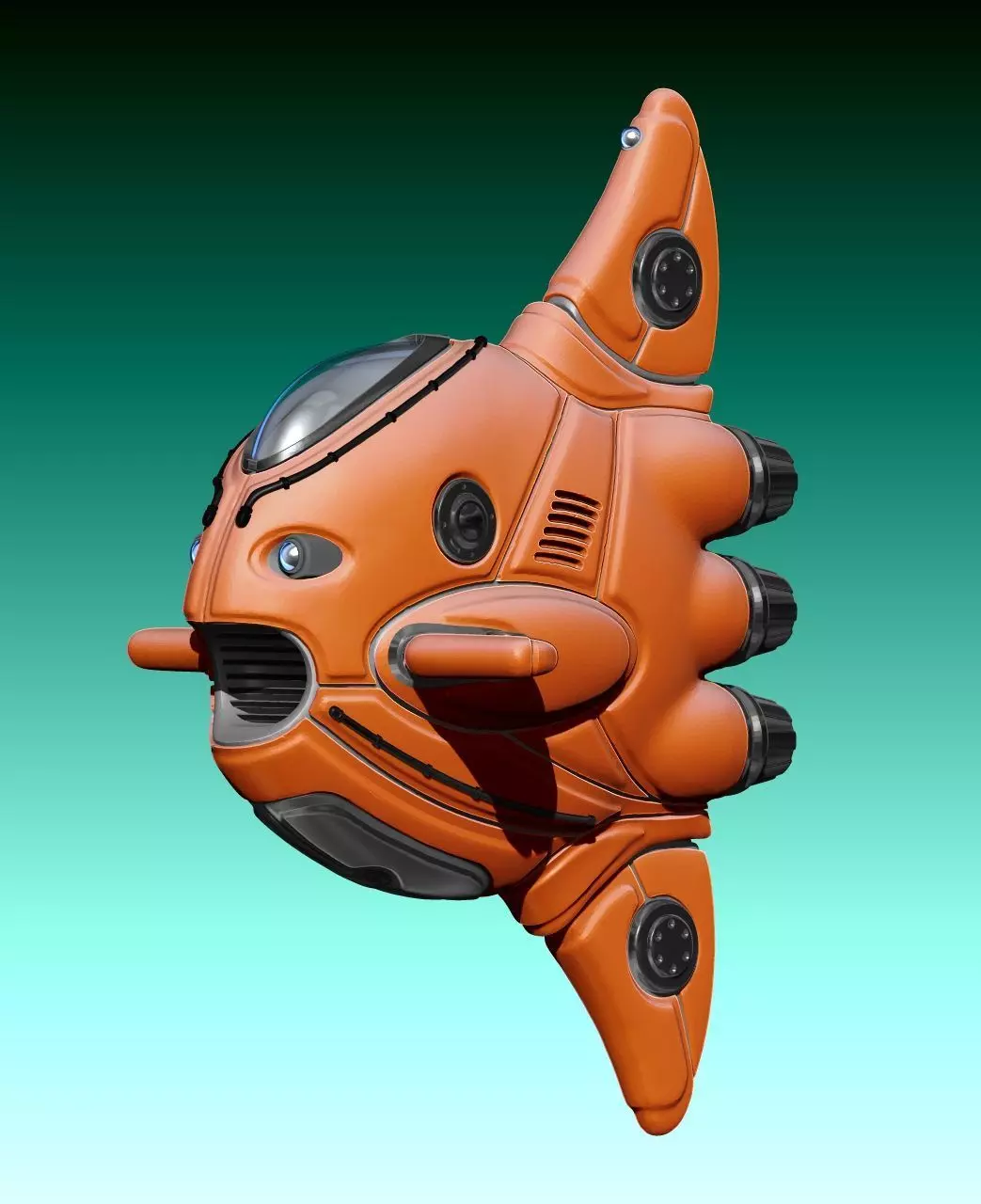 I created this model basing on the sunfish, I always liked this animal and I hope to have captured the essence. Some time ago I wanted to do a ship inspired by some kind of marine animal and this is the result.