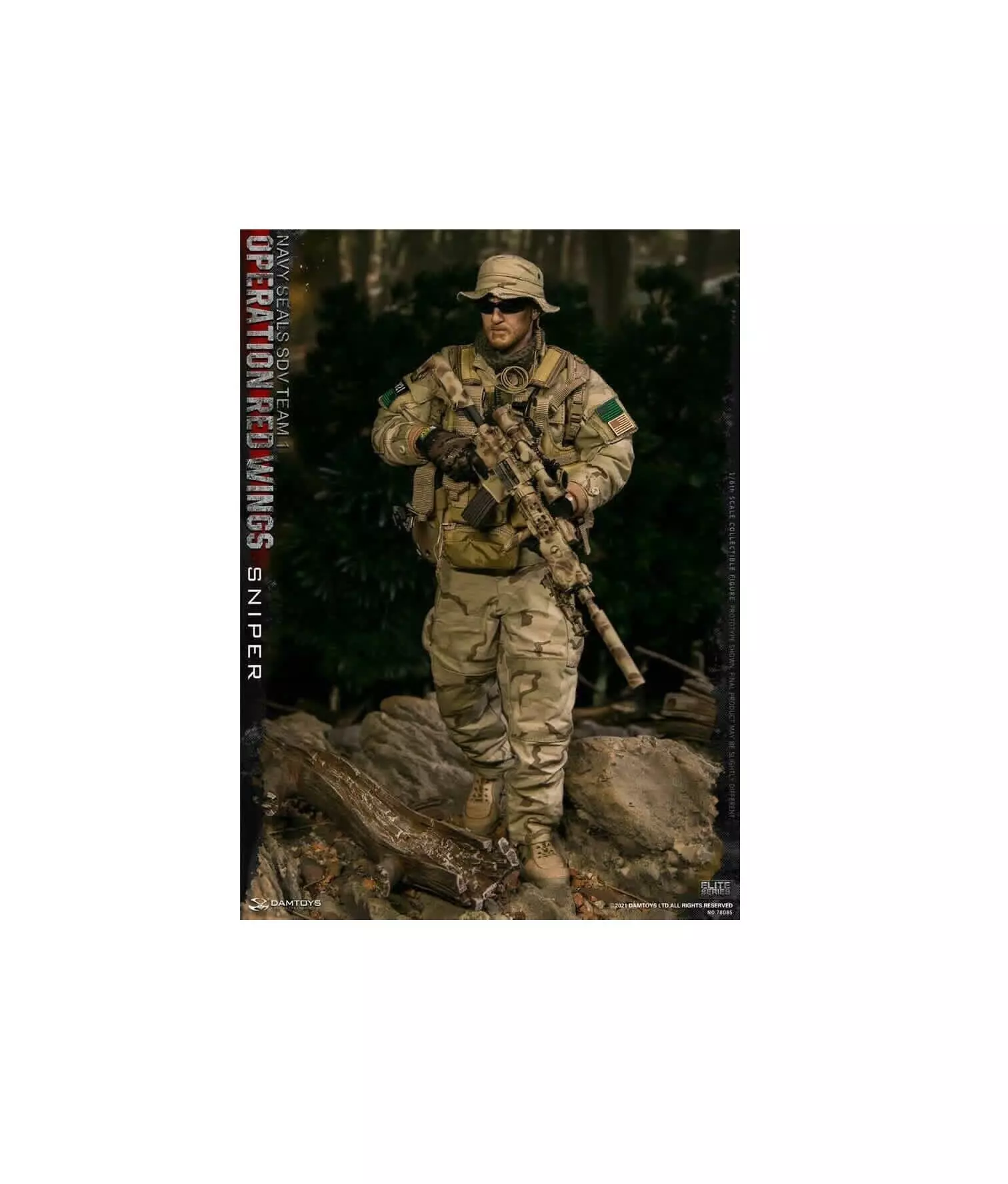 This is a highly detailed 3D model of a Navy SEAL sniper from Operation Red Wings. The figure is designed with realistic modern military gear including tactical vest, helmet, camouflage uniform, and sniper rifle. The model captures the essence of a special forces operator in a combat-ready stance, perfect for collectors, military enthusiasts, or realistic diorama setups.