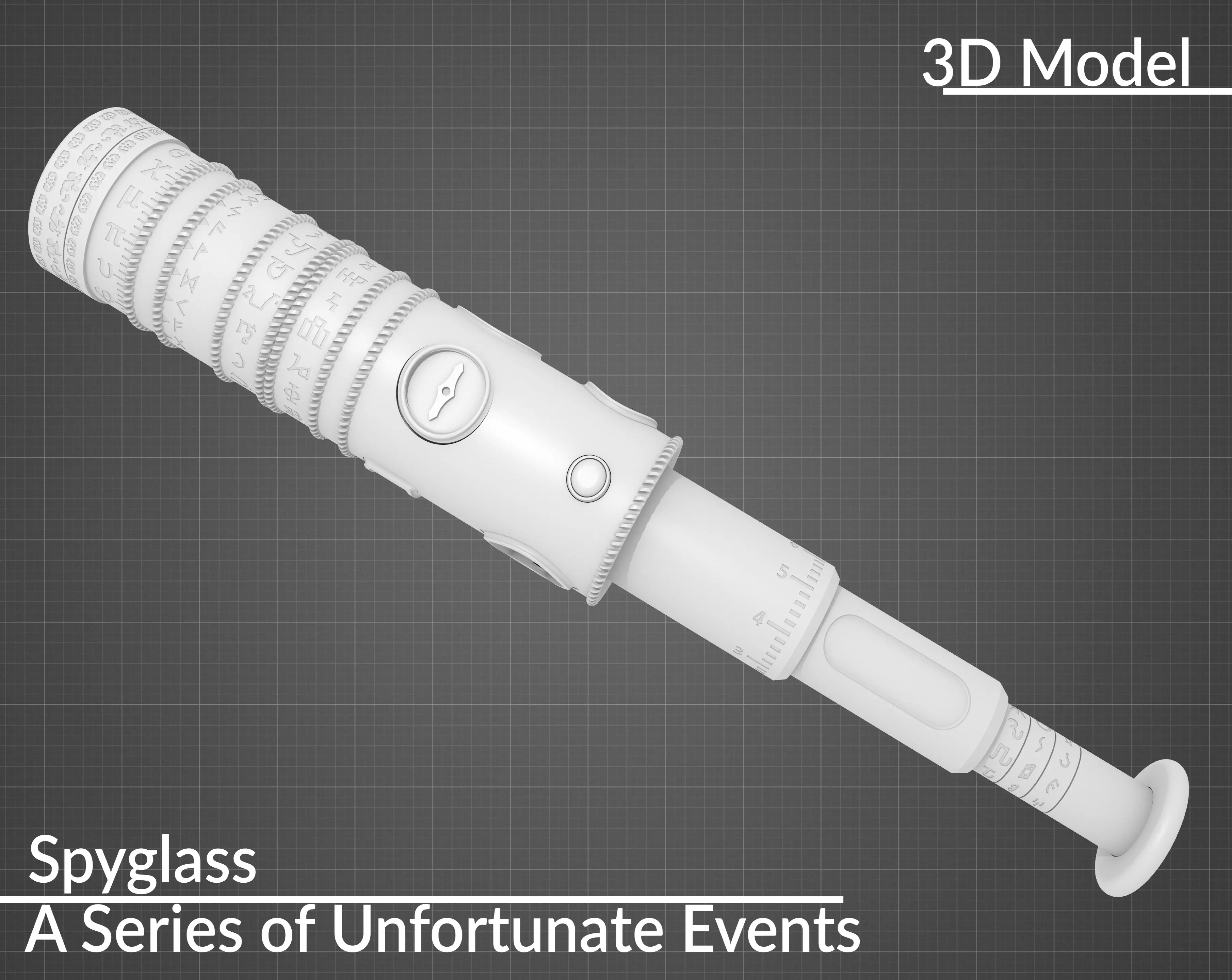 This is my model of Spyglass from the Series of Unfortunate Events Spyglass (Netflix) For this model you'll need 2mm rod for hinge, and 5 x 2,5mm screw heads.The first four rings spins and click.There is place in a toggleable zoom part for 1mm foam/felt if you want smoother movement.(I used wood veneer to make nice texture to wood parts as well as cheap 20x25 monocular for optic glass parts)