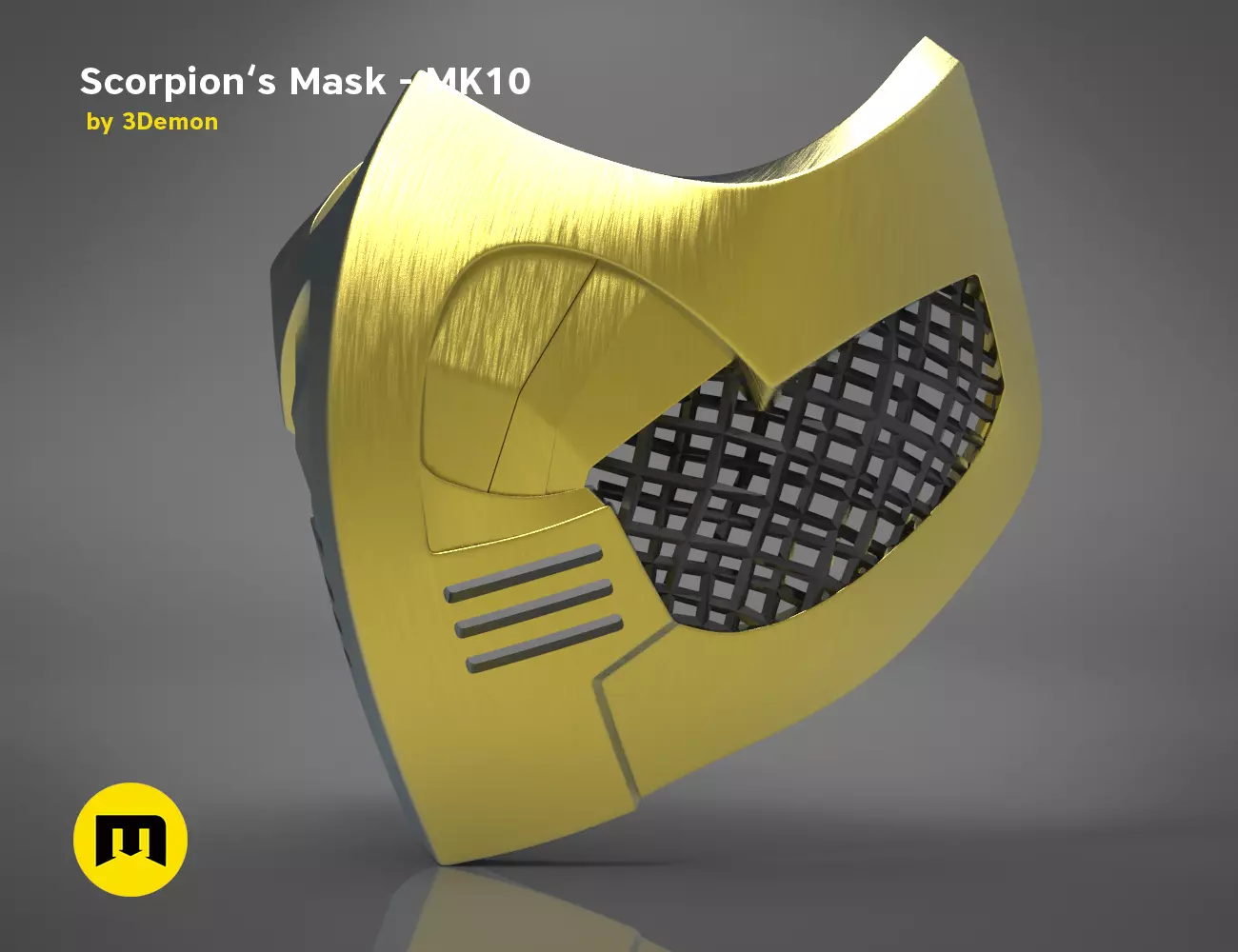This 3D printable model is a Scorpion's Mask from Mortal Kombat.
