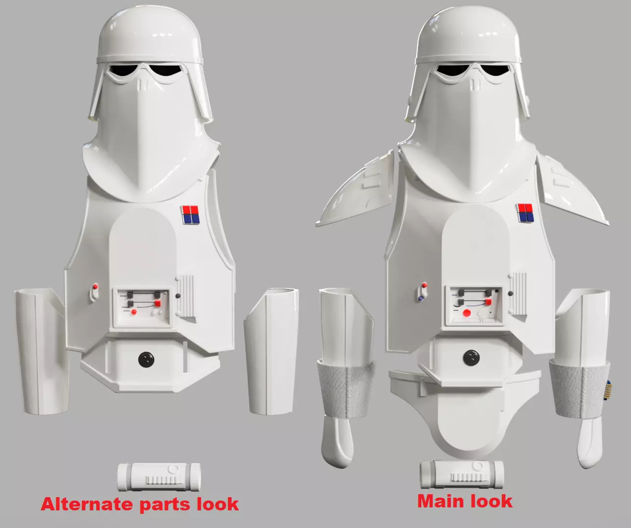 Chestplate in 3 versions: Movie style, Sideshow styled and Kenner (90's POTF2 12 inch figure) details style. There are also versions of the movie and Sideshow style plates without rank badges plus a separate badge piece.