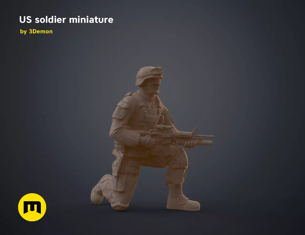 This is a digital 3D printable model of a highly detailed US soldier miniature in 32mm scale.Miniature has two versions. First one is kneeling with a rifle and the second one is standing without a rifle.