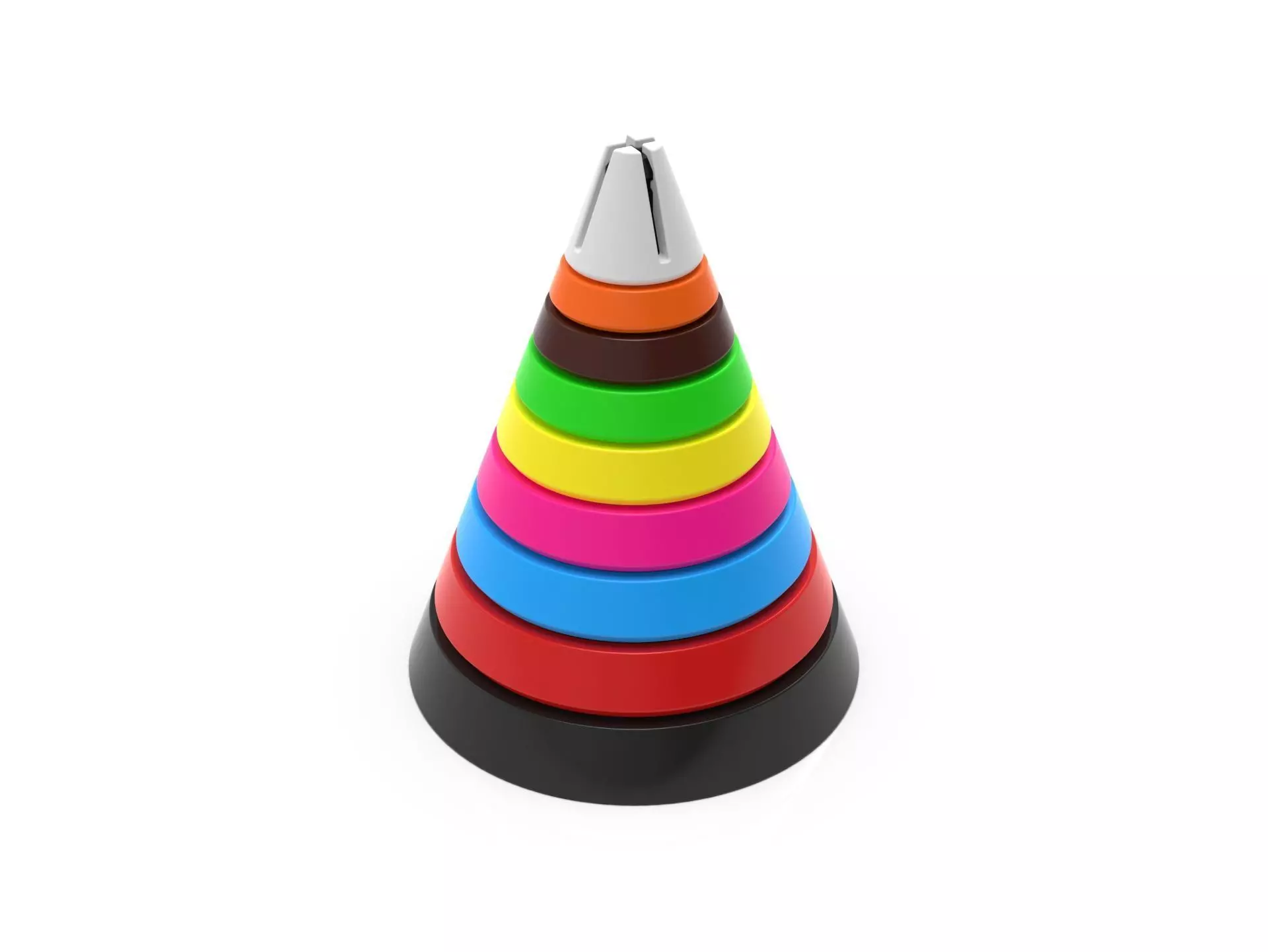 3D printable puzzle, educational toy, kids stacking game, conical shape toy, Montessori learning, preschool activity, cognitive development, color sorting game, STL download, printable kids toy