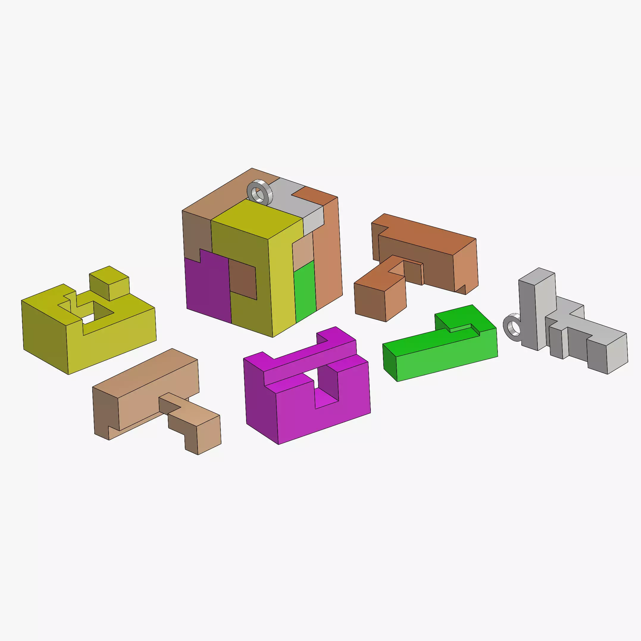3D printable six-piece puzzle cube with separate print files for each piece.