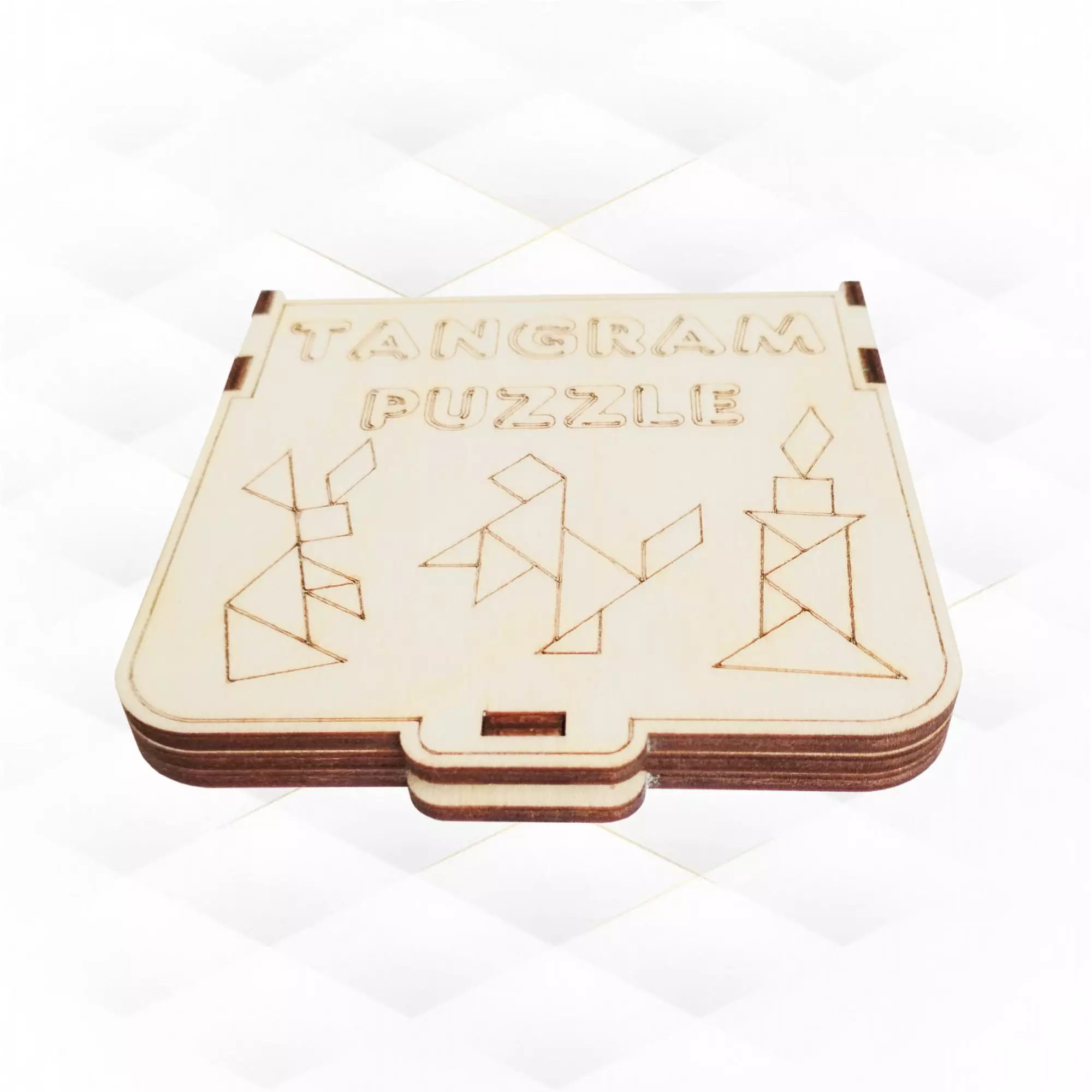 Files for cutting 3mm thick are included. When assembling, you must use glue!The photographs show a Tangram Puzzles made of 3 mm plywood with dimensions:98x102x9 mm (3.9x4x0.35 inches). Largest part size 98x102 mm (3.9x4 inches).
