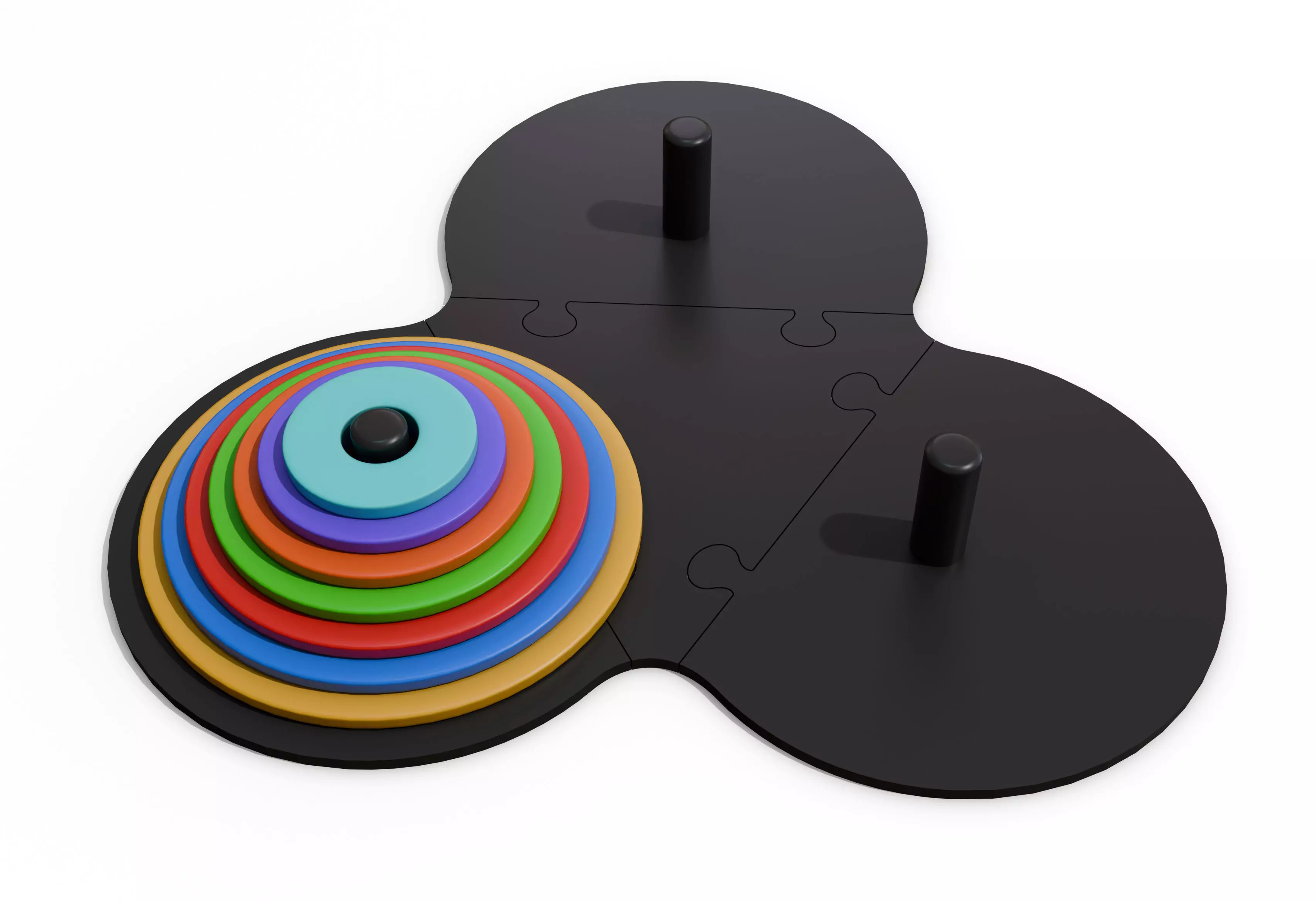 Descripcion del modelo 3DLa Torre De Hanoi es un juego matematico simple pero divertido. el objetivo de este didactico es realizar una evaluacion de las funciones ejecutivas de los ninos, trabajando la capacidad de planificacion y resolucion de problemas.