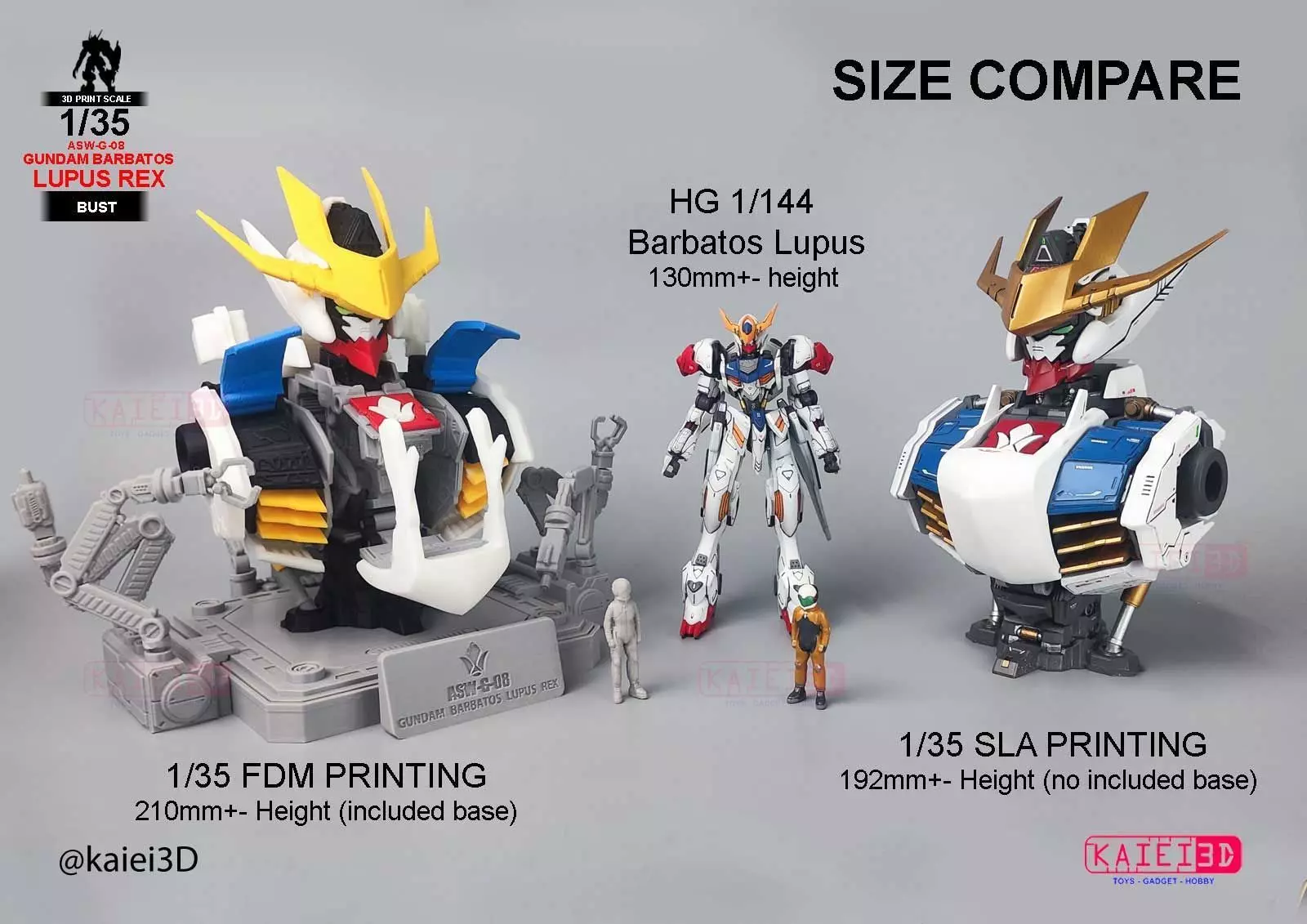 1/35 Gundam Barbatos Lupus rex BUST, total 96 part included scale 1/35 pilot and base. finished build total 200mm +- height. Estimate total need to prepare 900 above filament and 1500ml above resin (not included base in SLA print) for print all the parts, 3d printer with 180mm x180mm build volume above will be no problem printing all the parts. some part need to use super glue to assemble together. no multi-color filament needed, all color is in separated part, the model can be scale up and down, but a the joining part may need to do some edit only can fit nicely after scaling.