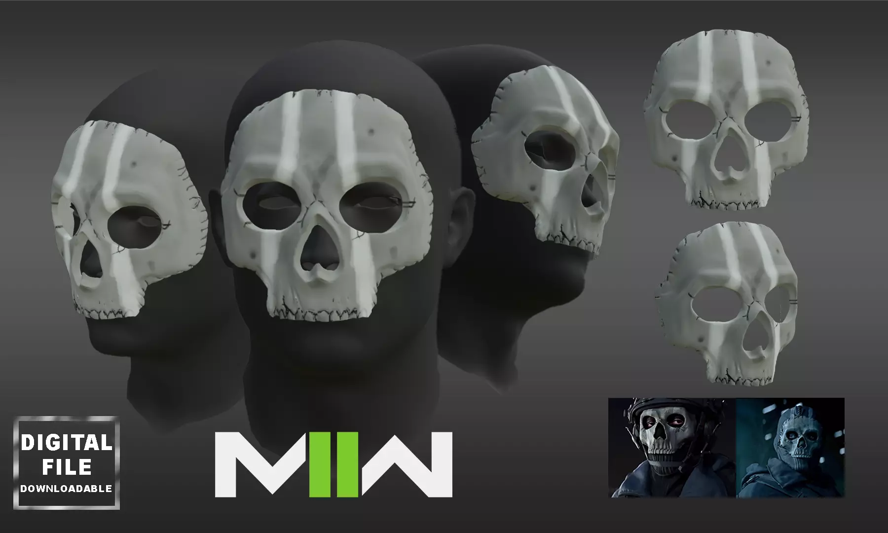 GHOST Operator Mask Game Call of Duty Modern Warfare Battle Royal WARZONE STL 3D print file Cosplay Mask