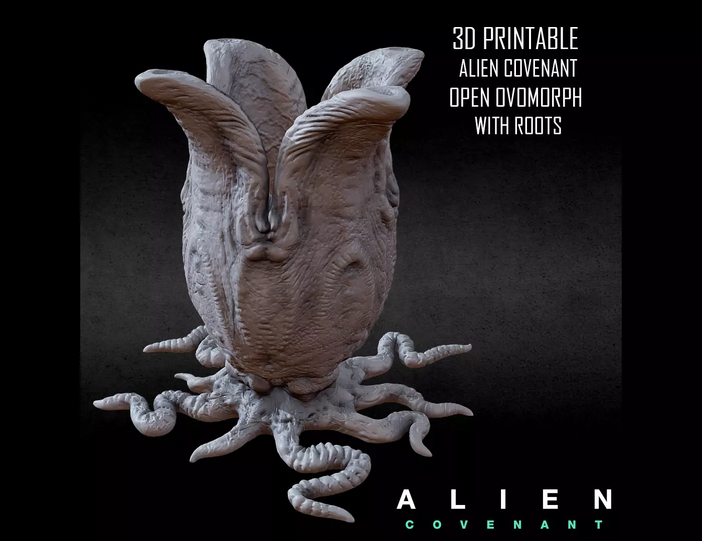 3D PRINTABLE ALIEN COVENANT OPEN EGG WITH ROOTS 3D print model