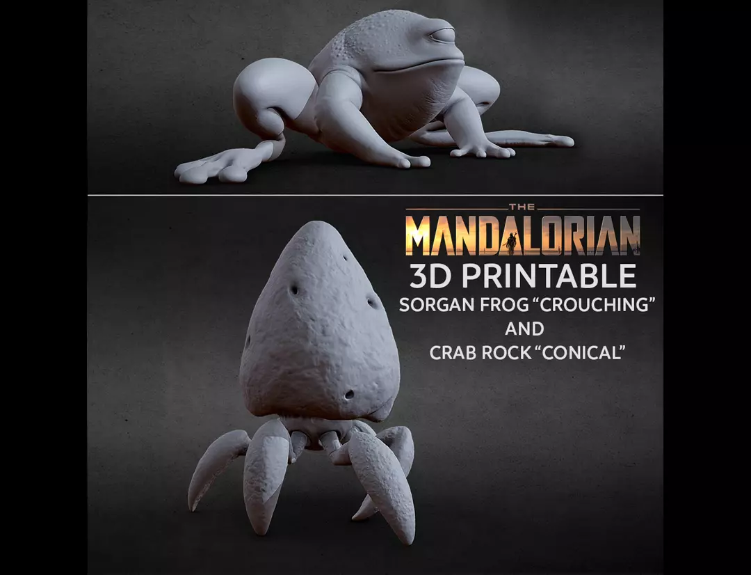 3D PRINTABLE CRAB ROCK CONIC AND SORGAN FROG CROUCH MANDALORIAN 3D print model