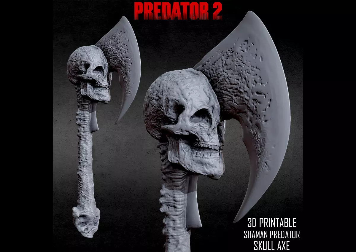3D PRINTABLE SHAMAN PREDATOR SKULL AXE WEAPON 3D print model