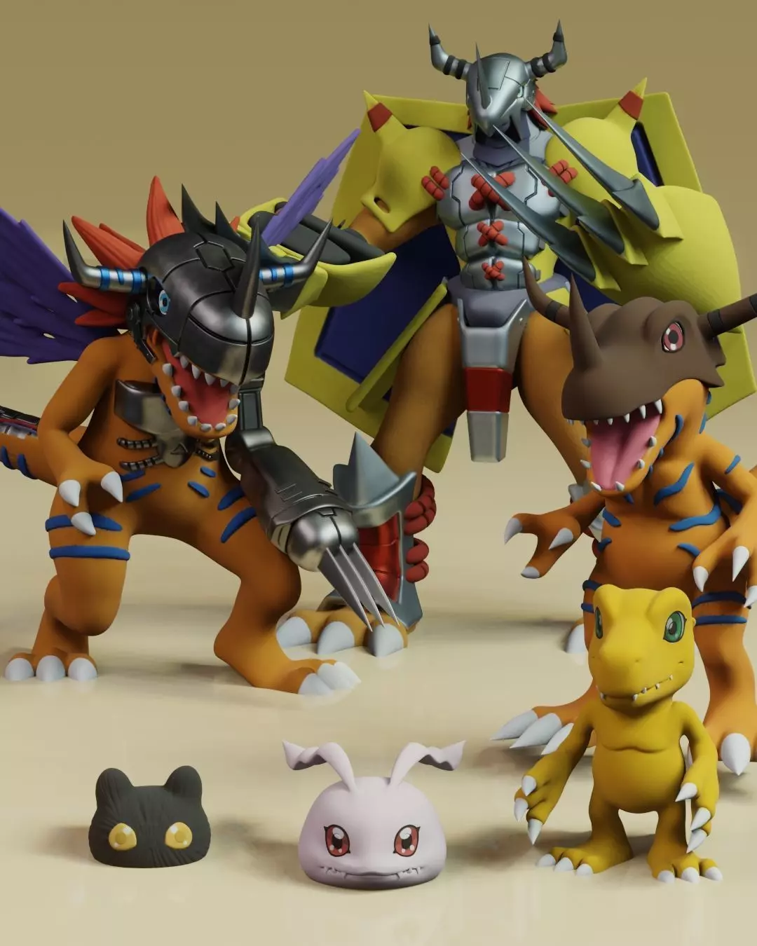 Contains entire agumon digivolution line up to wargreymon. greymon, metalgreymon and wargreymon are sliced for an easier printing. :)