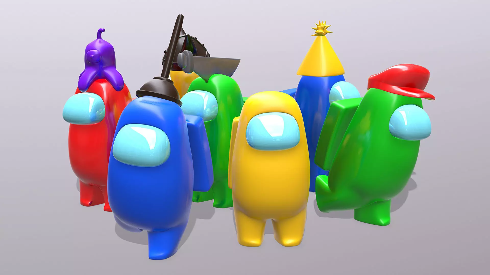 • Among Us character body (idle and running)The character has a peg hole under the left foot to fit in the box stand