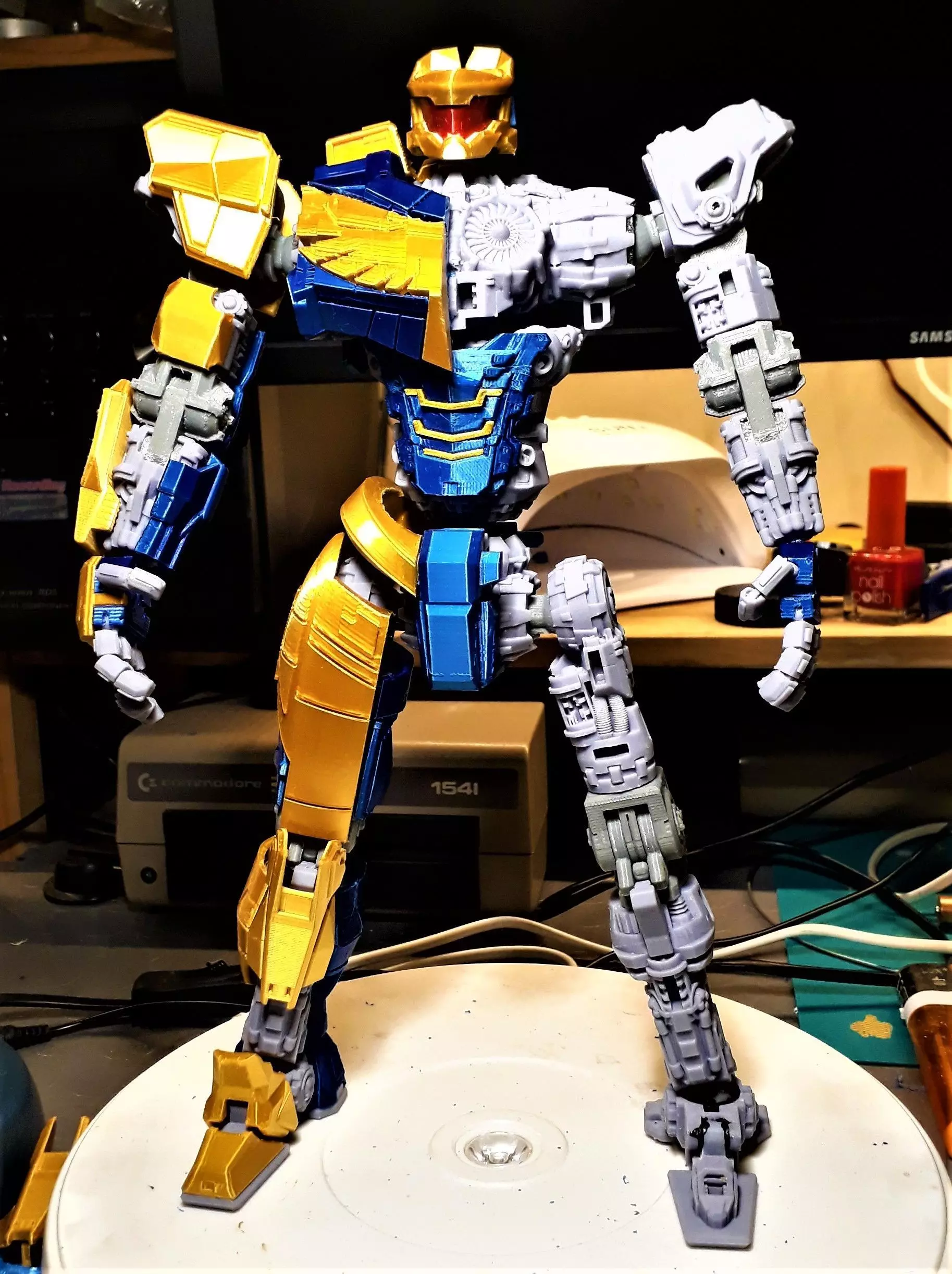 The armor has been divided so that parts can be printed with colored materials without the use of paints. it is also possible to expose the model with one side in armor and the other side completely naked.It does not require glue or screws for assembly.The ball joints are of new conception and are encapsulated in the body without the risk of breakage, also simplifying the printing system.The model shown in the photo is 30 cm high and was made with mixed technique: mechanical resin skeleton, abs joints, pla armor.However, you can make it with any material, except the joints which must be strictly in abs or petg.The model is highly posable and emulates humanoid expressions.The hardest part to print is the hands. those who do not have a precise printer may encounter problems, and for this reason I have also included hands in fixed poses.