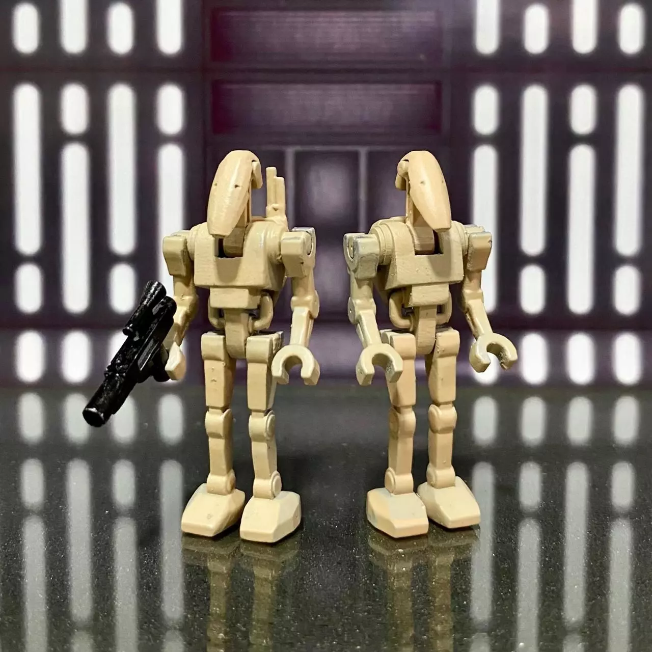 3D model descriptionCustomized minifigure of the droid character Battle Droid B1 in building block format, from the Star Wars series.