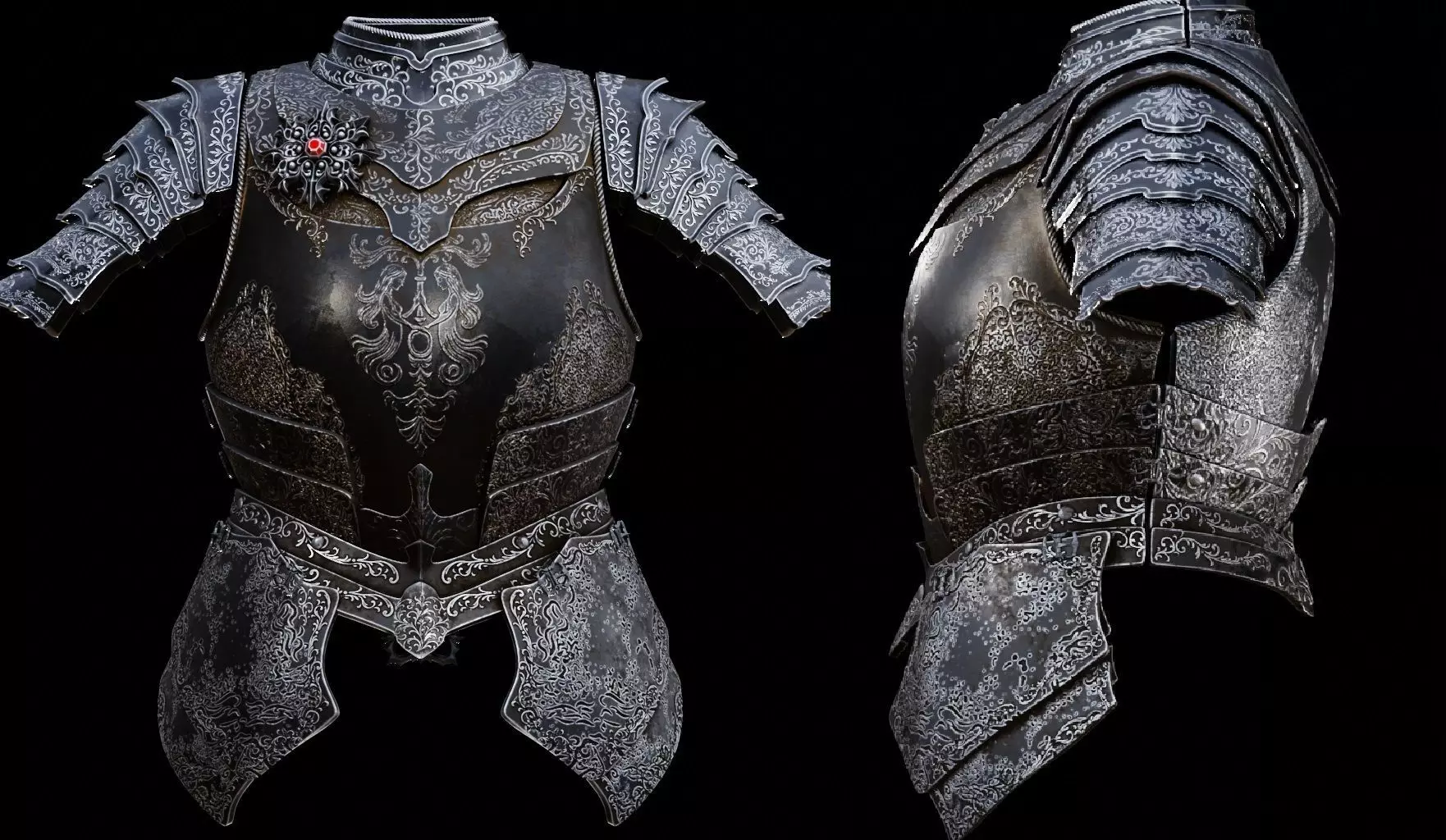 Well-worn black armor of the man-wolf Blaidd.Blaidd, who served as Ranni's shadow, was a loyal ally who would defy destiny itself if it would have him turn upon his Lady.This is a full, life-size plate armor set inspired by Blaidd from Elden Ring. Every plate is hand-sculpted with unique ornamental engravings, faithfully recreating the concept art of Blaidd's legendary armor. The model is meticulously organized into RAR archives for maximum clarity.Model contents:
