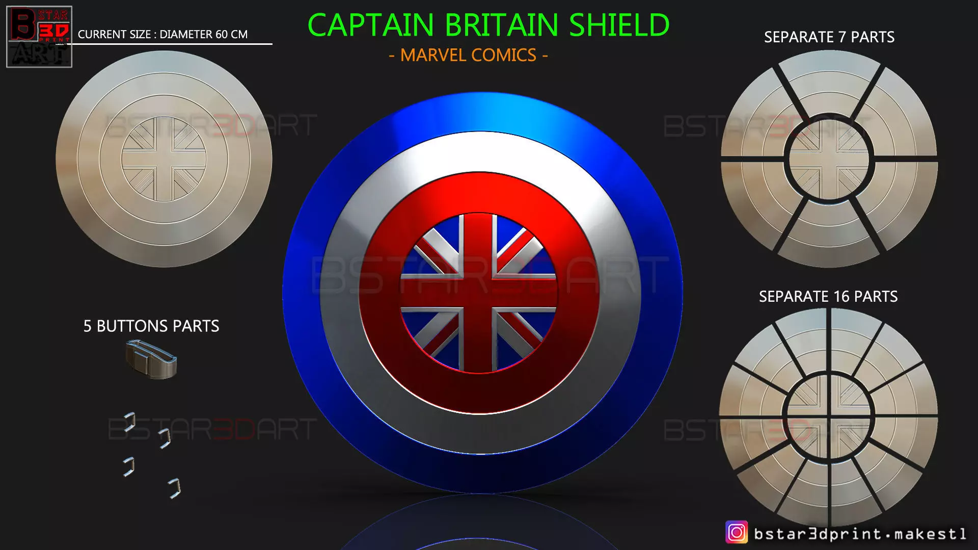 Captain Britain Shield for cosplay or custom Figure